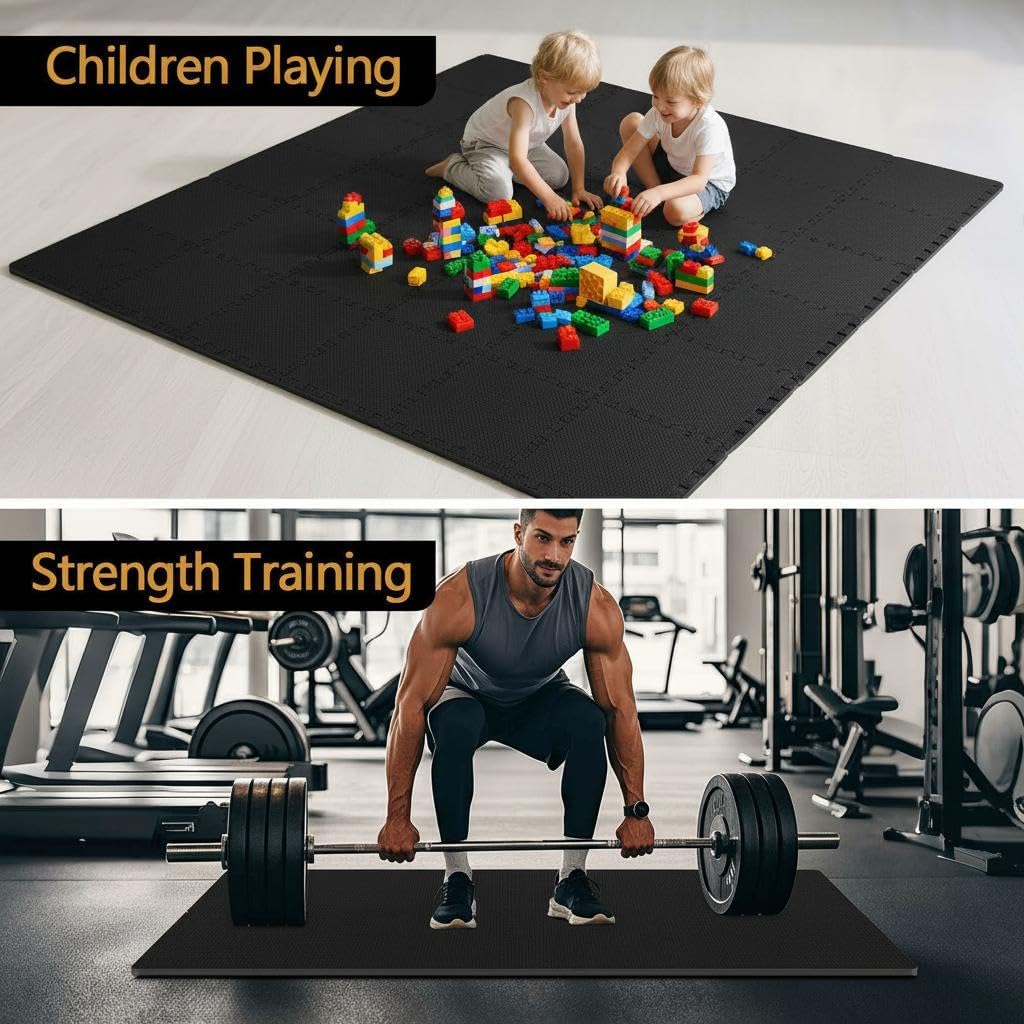 A: Interlocking design: The 12×12-inch mats function a “tongue-and-groove” interlocking system. Every mat has grooves and raised tabs on the sides that snap collectively tightly like puzzle items, stopping particular person mats from shifting beneath stress (e.g., leaping or stepping). We advocate utilizing a number of mats collectively to attenuate motion
