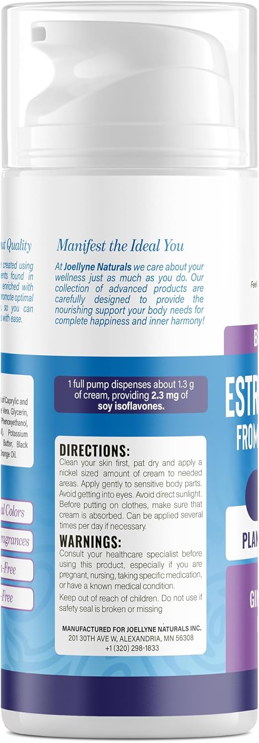 Plant-Primarily based Cream – Formulated with naturally derived Soy Isoflavones, mixed with botanical elements reminiscent of Ginseng, Crimson Clover, and Inexperienced Tea. Consists of skin-friendly Shea Butter and Coconut Oil.