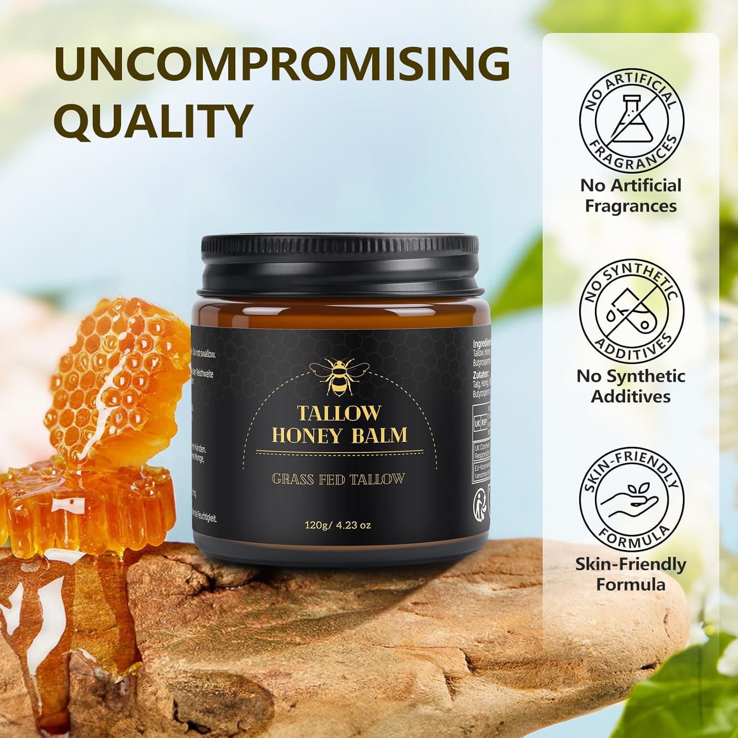 ✔ 100% Pure – Made with 100% grass-fed beef tallow, beeswax, shea butter, olive fruit oil.