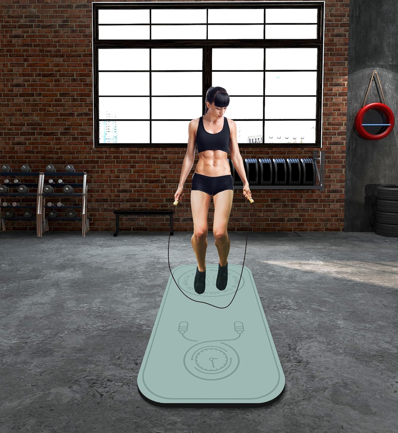 Dimension: 55″ x 24″ x 8mm bounce rope mat, mild weight, might be carried to any flat indoor and out of doors sports activities venues, appropriate for heavy bounce rope, weightlifting, stretching, energy coaching, ground train and yoga, mat floor space The novel design will help you intend the sports activities space moderately, save house and luxuriate in sports activities.
