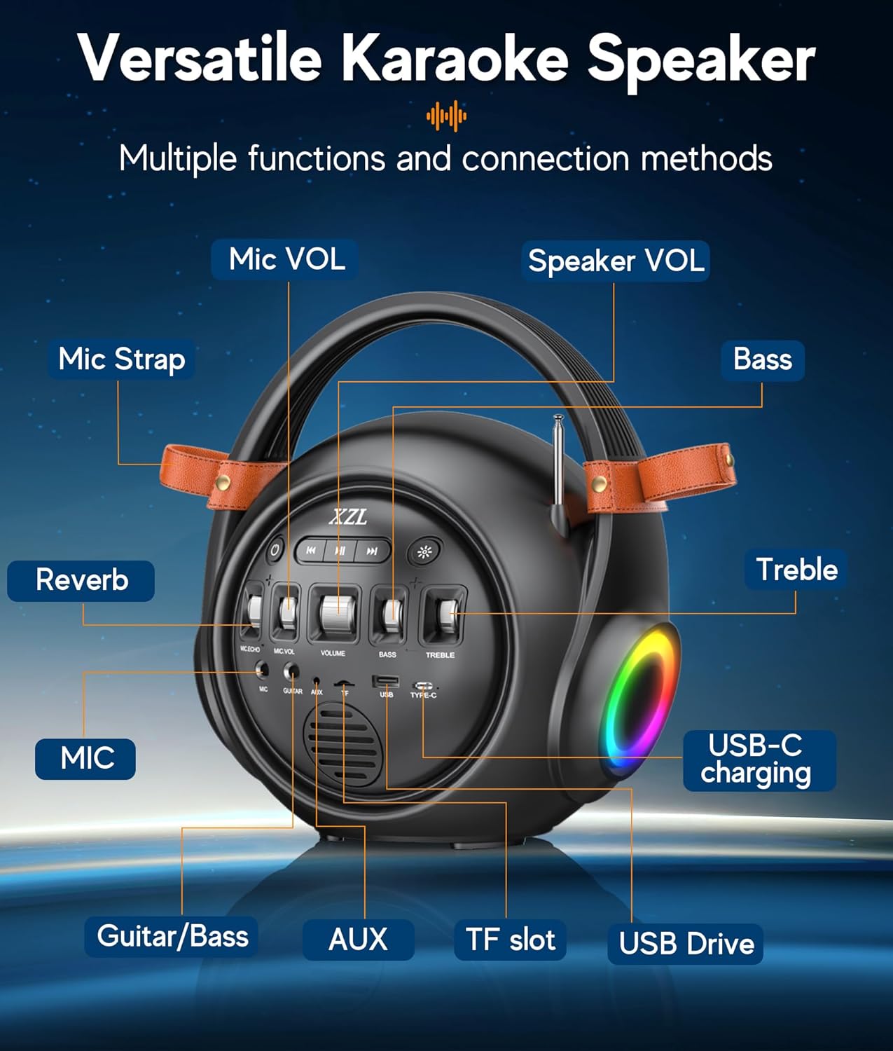 【Multifunctional Karaoke System】Adjustable reverb, bass, and treble settings, together with guitar/mic/AUX ports, TF card, and USB playback, make this machine versatile for karaoke, events, weddings, speeches, and extra. Enjoyable for each adults and youngsters!