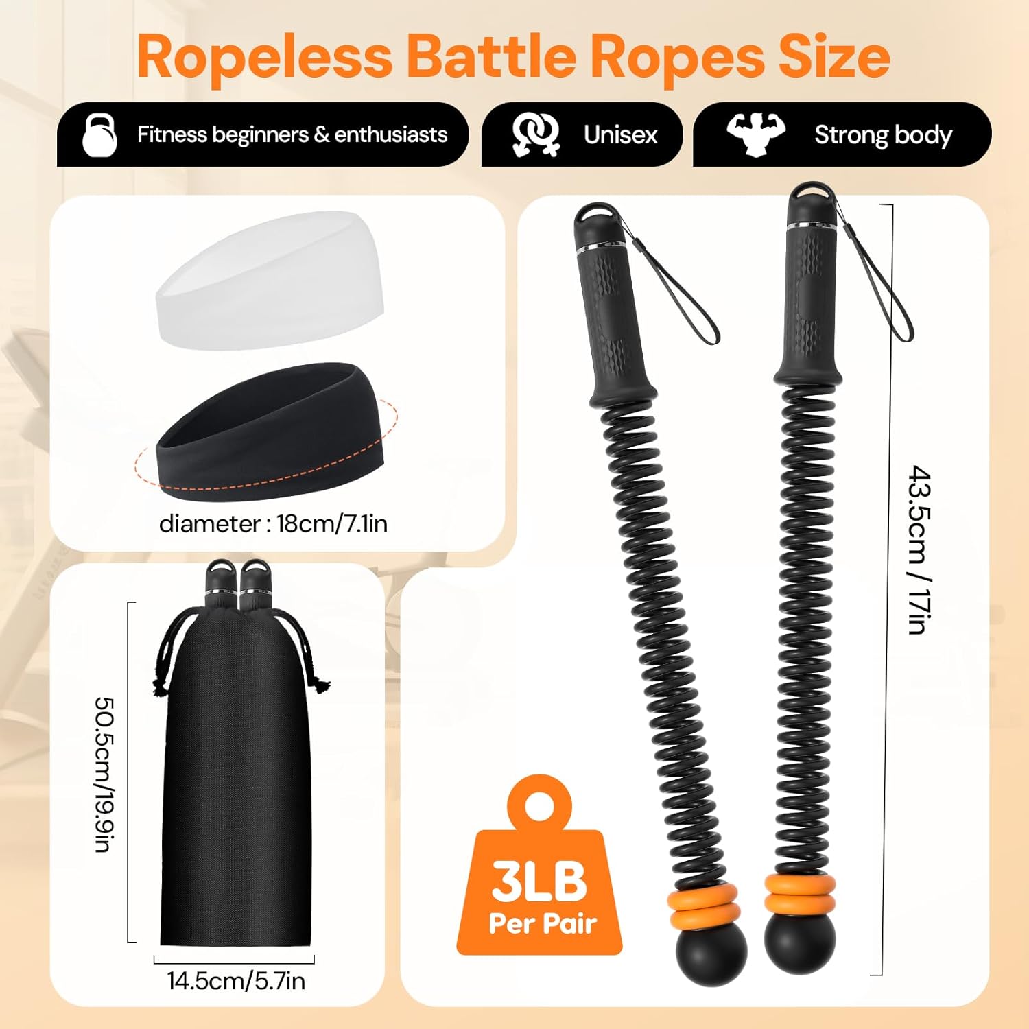 ROPELESS DESIGN: Modern cordless battle ropes get rid of area constraints, permitting you to carry out intense cardio and energy coaching exercises wherever in your house fitness center without having ceiling top or ground area for conventional ropes. Ropeless battle ropes characteristic a silent, cordless design that gained’t disturb others.