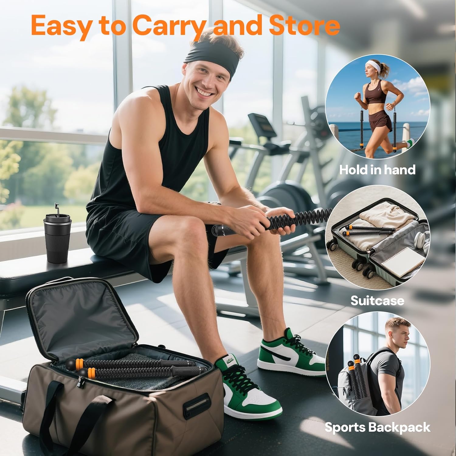 WEIGHTED HANDLES: Heavy responsibility weighted handles present resistance for efficient higher physique, core, and cardiovascular coaching, good for HIIT exercises, energy constructing, and low-impact cardio workout routines. The deal with has a threaded steady reference to a tender rubber textured grip to stop slipping and soak up sweat. An anti-slip lanyard stops unintentional falls, and a thickened silicone protecting cowl on the highest avoids collisions.
