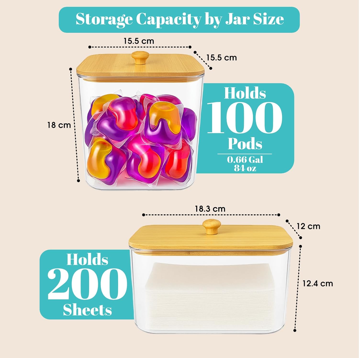 ✔️ 𝐄𝐚𝐬𝐲-𝐔𝐬𝐞 𝐋𝐢𝐝: These laundry storage containers are designed with a large mouth for easy scooping, filling, and cleansing. The pure picket lid suits snugly with out rubber seals, making it simpler to open and shut whereas including a contact of rustic allure to your laundry house.