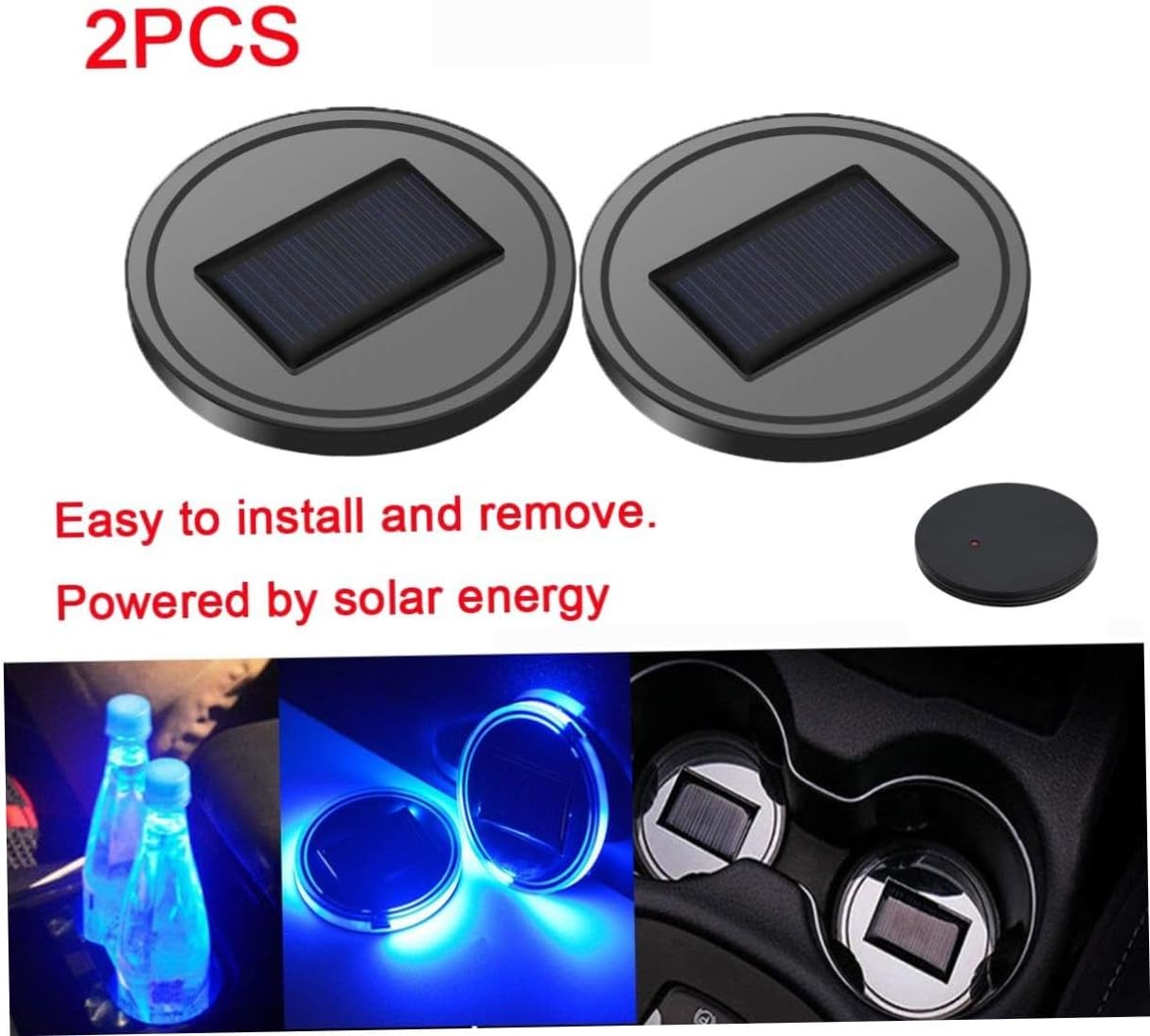 – Photo voltaic rechargable LED coaster cup pad, robotically activates at darkish when it feels vibration, and turns off after about 15s if senses no vibration automobile cup pad.