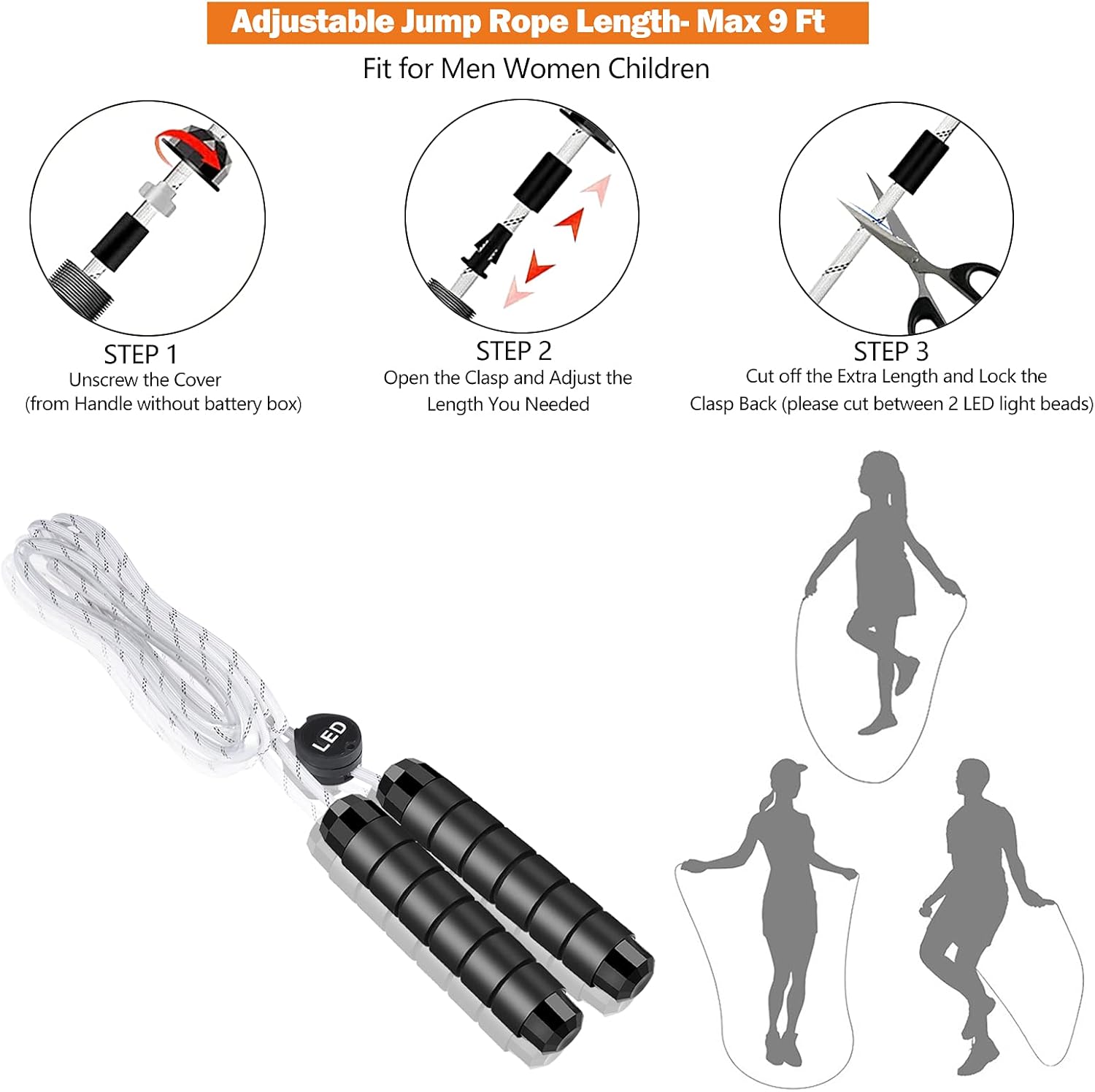 💪USB RECHARGEABLE: Lighted skipping rope built-in Rechargeable LI-battery, kind c charging cable included, eco-friendly and economically. Simply use USB cable to cost this gentle up leap ropes for day by day utilizing.