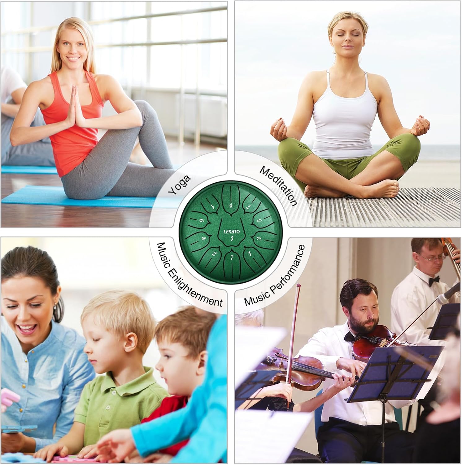🥁【Wider Vary of 11 Tones】Lekato metal drum has a wider vary of 11 tones in D main, making a clear, ethereal and buddha-like sound. Extensively used for meditation, yoga, early music training