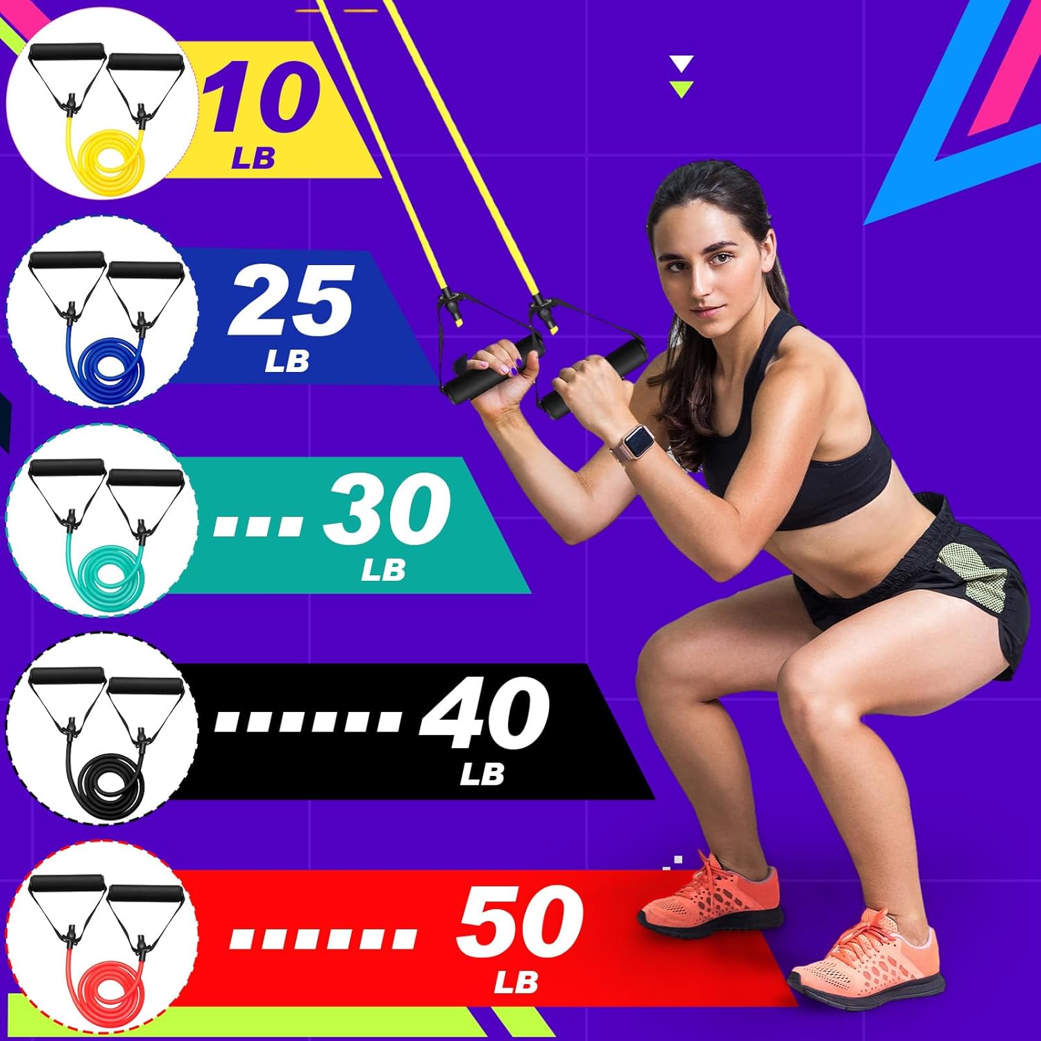 Bundle Consists of: you’ll obtain 5 items of various degree train bands with handles and 1 piece of door anchor, together with 1 piece of 10 lb in yellow, 1 piece of 25 lb in blue, 1 piece of 30 lb in inexperienced, 1 piece of 40 lb in black and 1 piece of fifty lb in pink, sufficient to satisfy your day by day wants