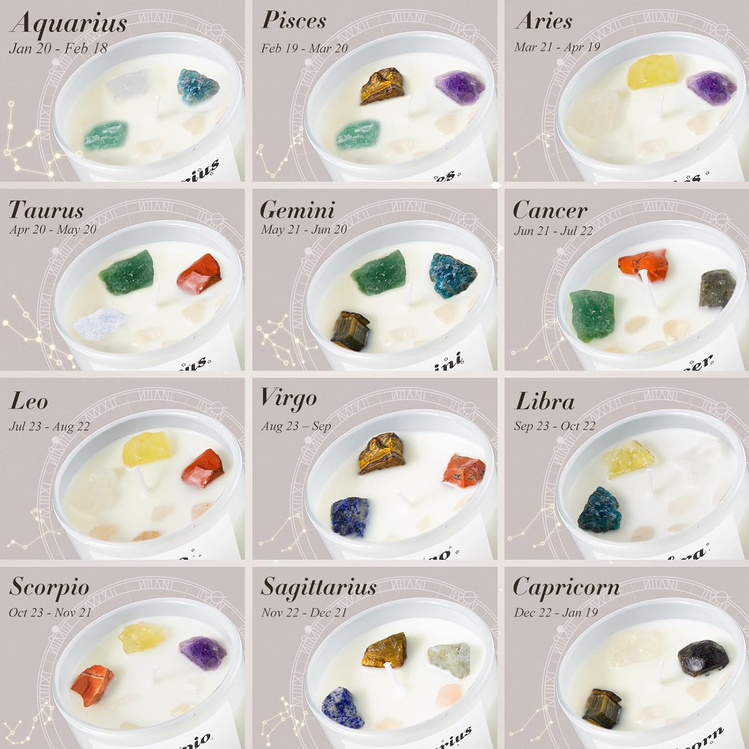 Balanced Present for Libra Girls :A harmonizing candle that options Blue Apatite, Citrine, and Clear Quartz—very best for inside peace and readability.