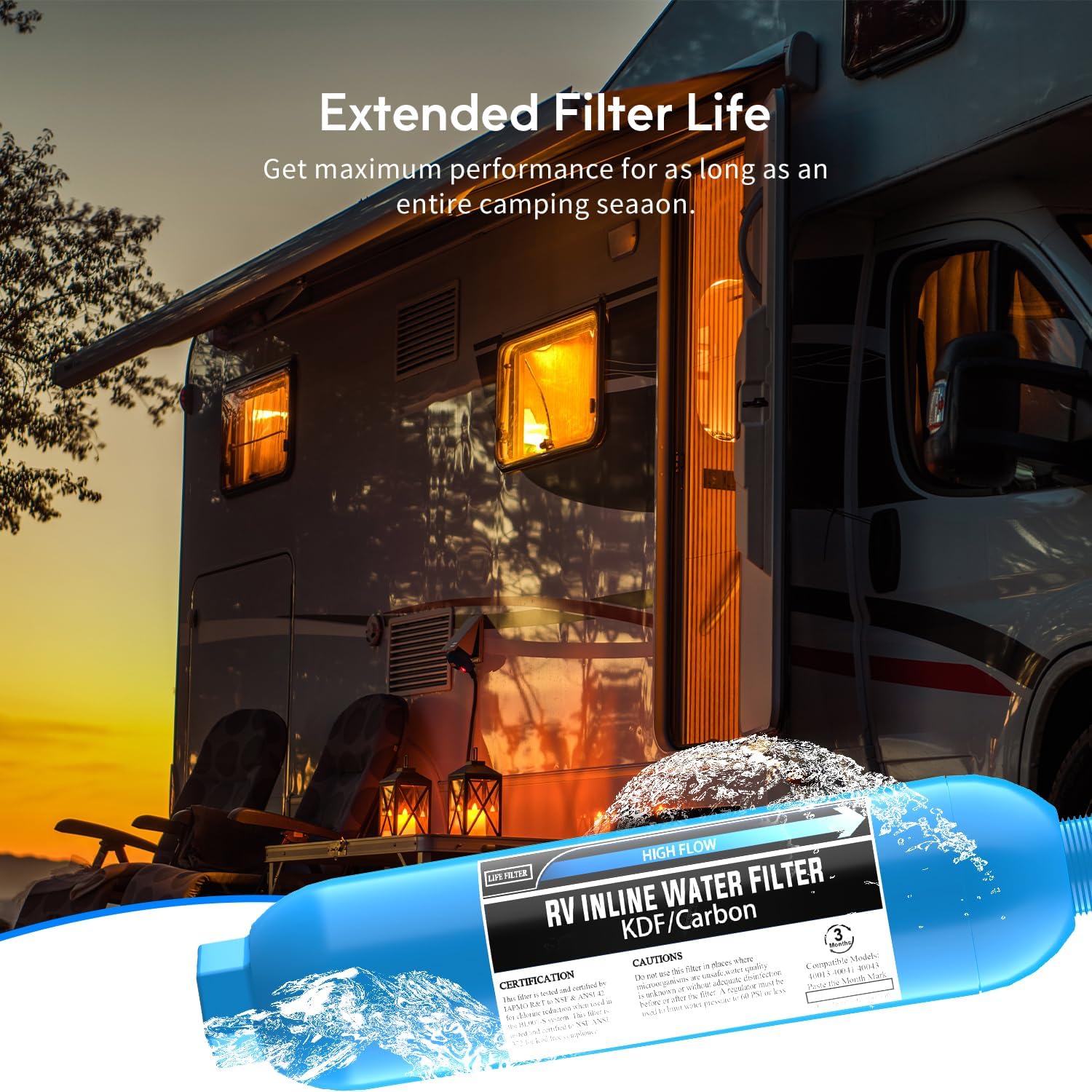 Straightforward Set up: Comes with an anti-kink versatile hose protector, which helps to cut back the hose from kinking and straining for easy water circulate. The RV inline water filter will be hooked up to any normal water hose for secure consuming water
