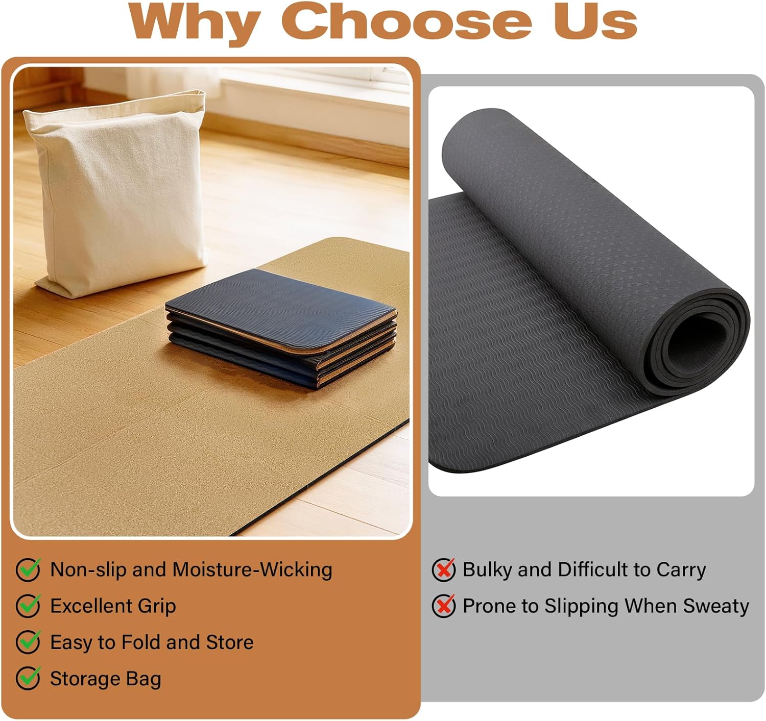 Light-weight & Transportable: Journey yoga mat encompasses a versatile foldable design for easy carrying and storage. It lays flat constantly with out curling edges after repeated folding and unfolding. Excellent for journey, enterprise journeys, out of doors exercises and on-the-go use