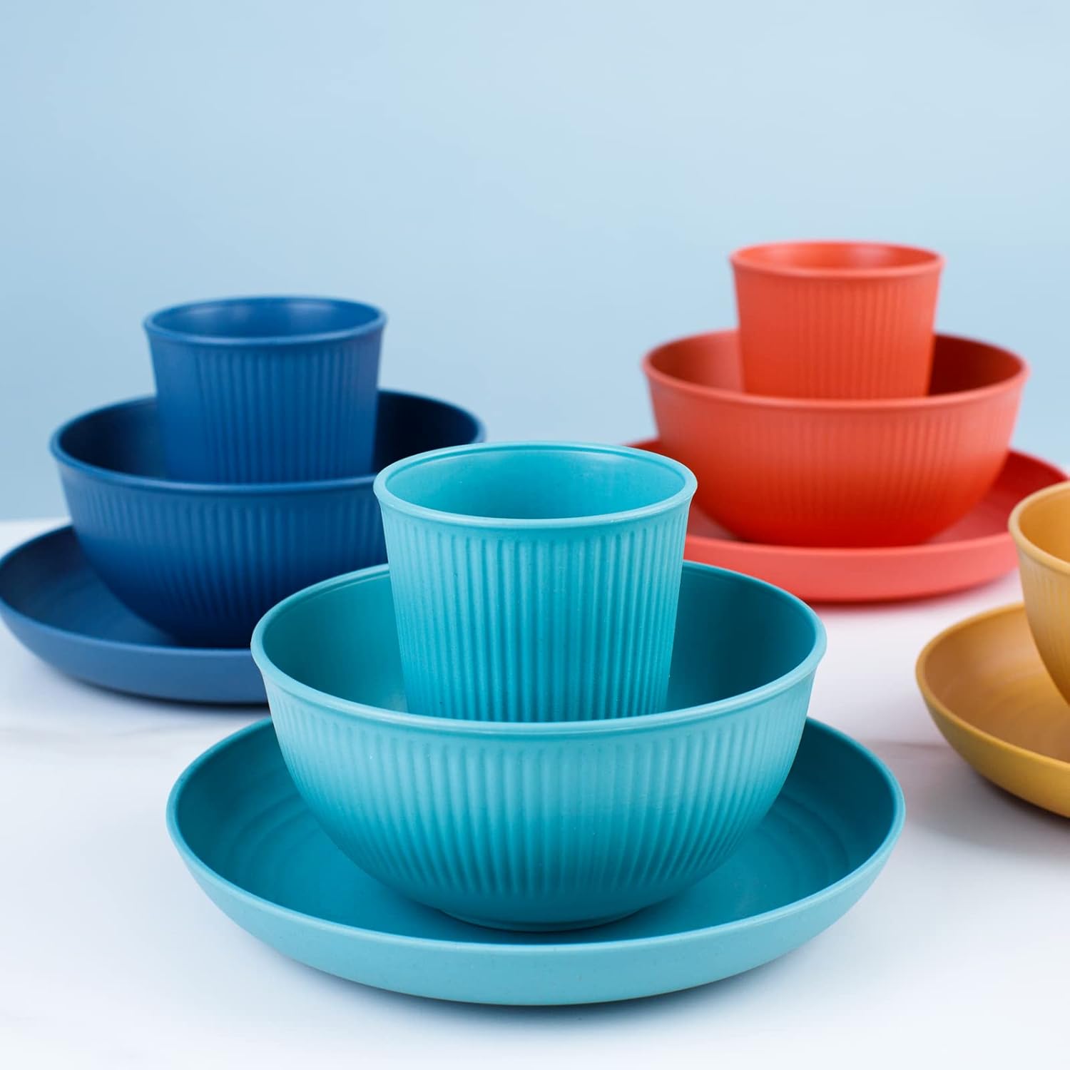 Colourful and Handy Dimension:camper dish units comprising of 8pcs 9 inches dinner plates, 8pcs 7.5inch salad plates, 8pcs 30oz bowls and 8pcs 20oz cups ,32packed, Appropriate for residence use, faculty features and outside actions.