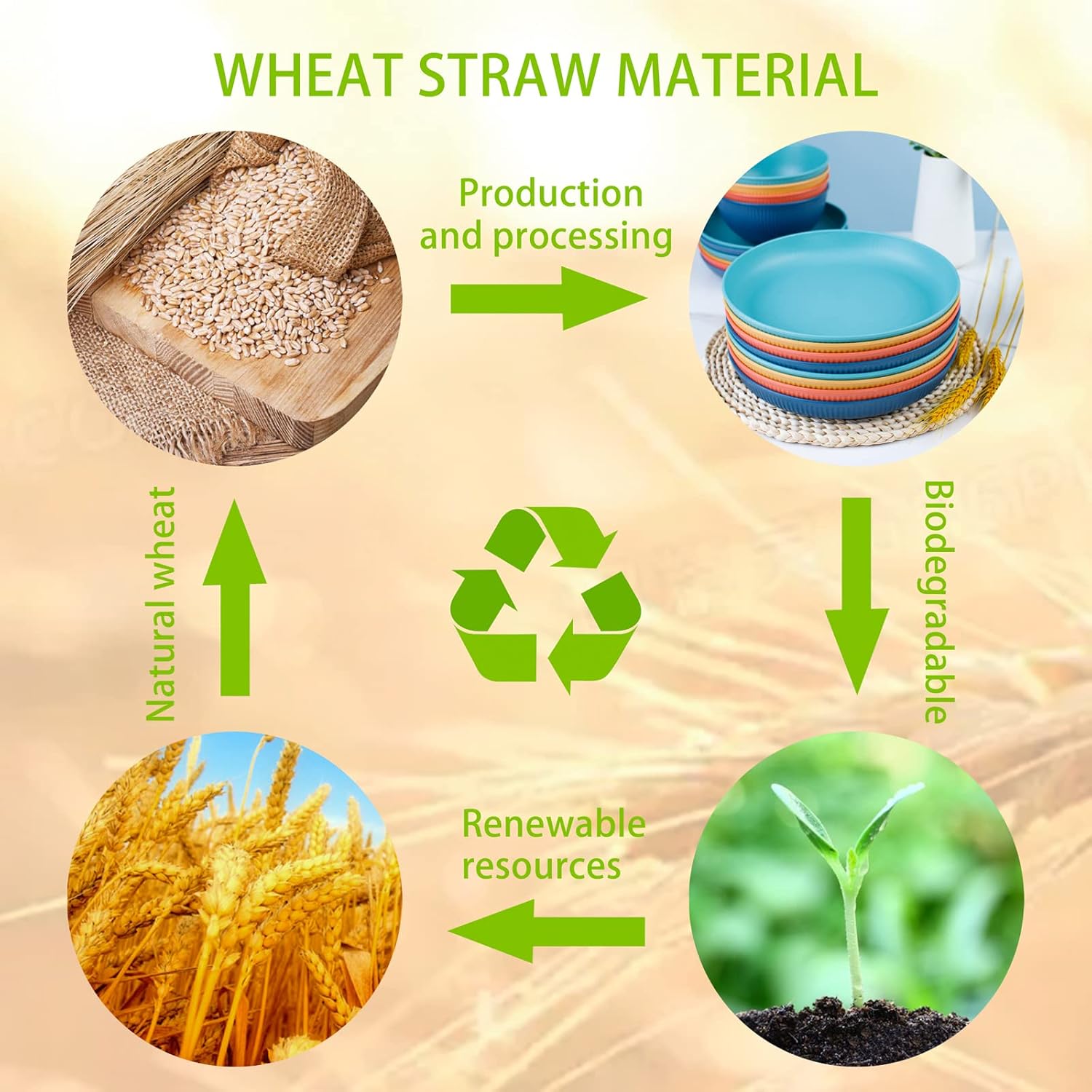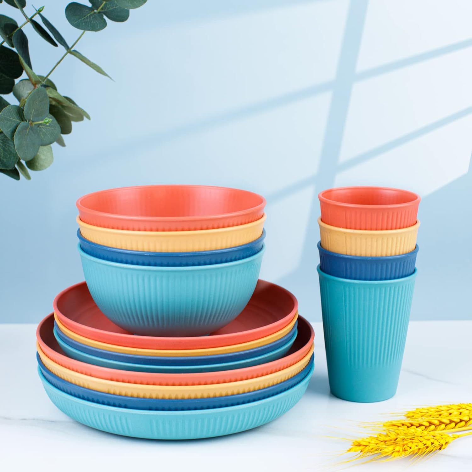 Meals Protected and Unbreakable:Our wheat straw dinnerware set for 8 Constructed from wheat straw fiber and PP materials. BPA free and break resistant.More healthy alternative for members of the family, eco pleasant and sustainable to surroundings. In addition to this dinnerware set doesn’t scent of plastic