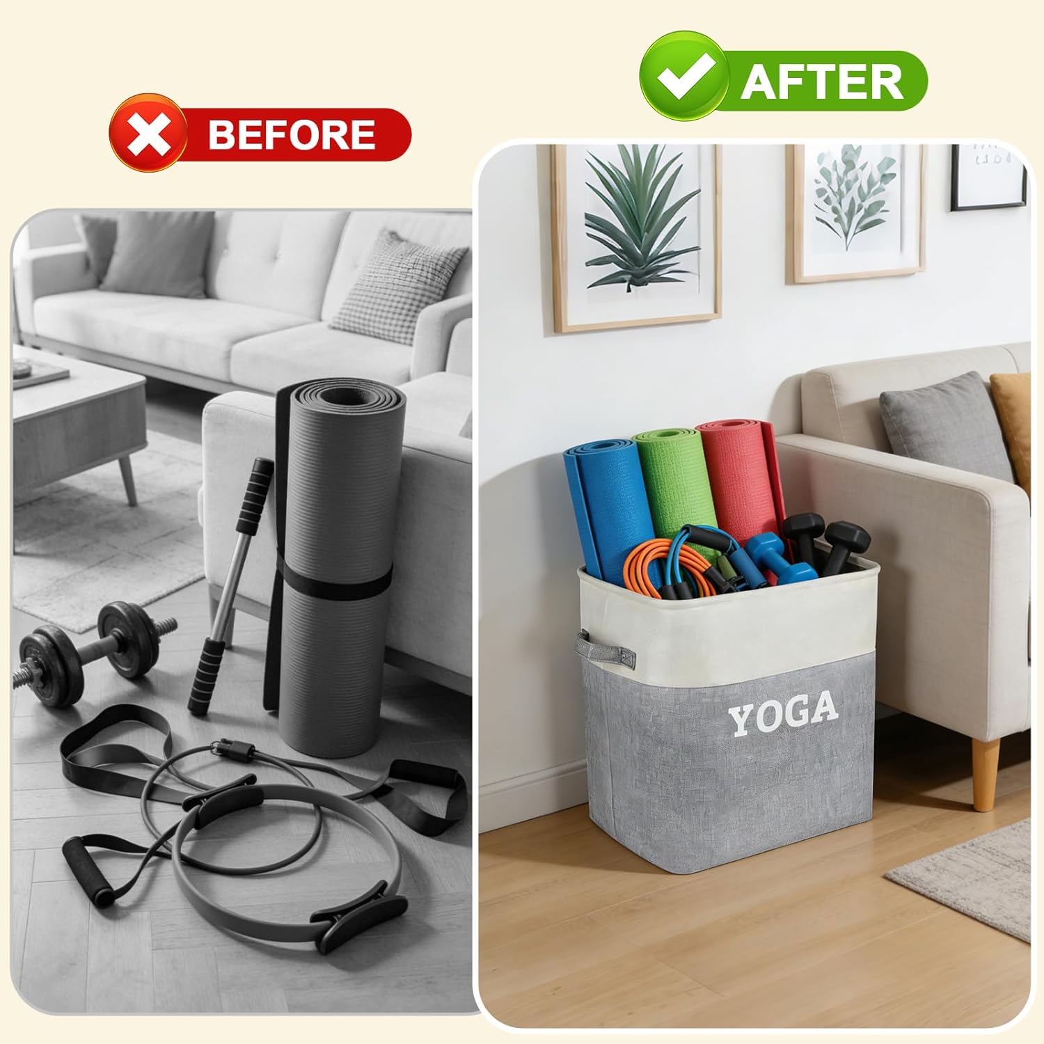 Giant Capability and Saving House: Yoga storage basket measures 15.5″ x 11.6″ x 15.9″, It is appropriate for storing yoga mat, foam curler, gymnasium tools storage, blankets, outfits and different residence train and health gear, protecting issues neat and tidy.
