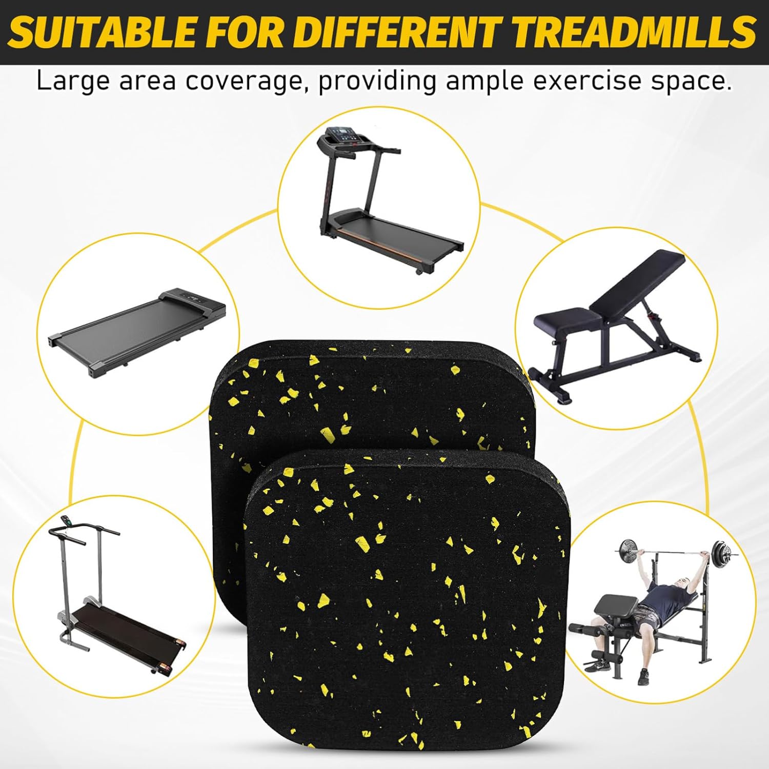 Luxshiny 6 PCS Rubber Treadmill Mat Pads: High Density Non-Slip Anti-Vibration Exercise Equipment Mat for Floor Protection and Noise Reduction