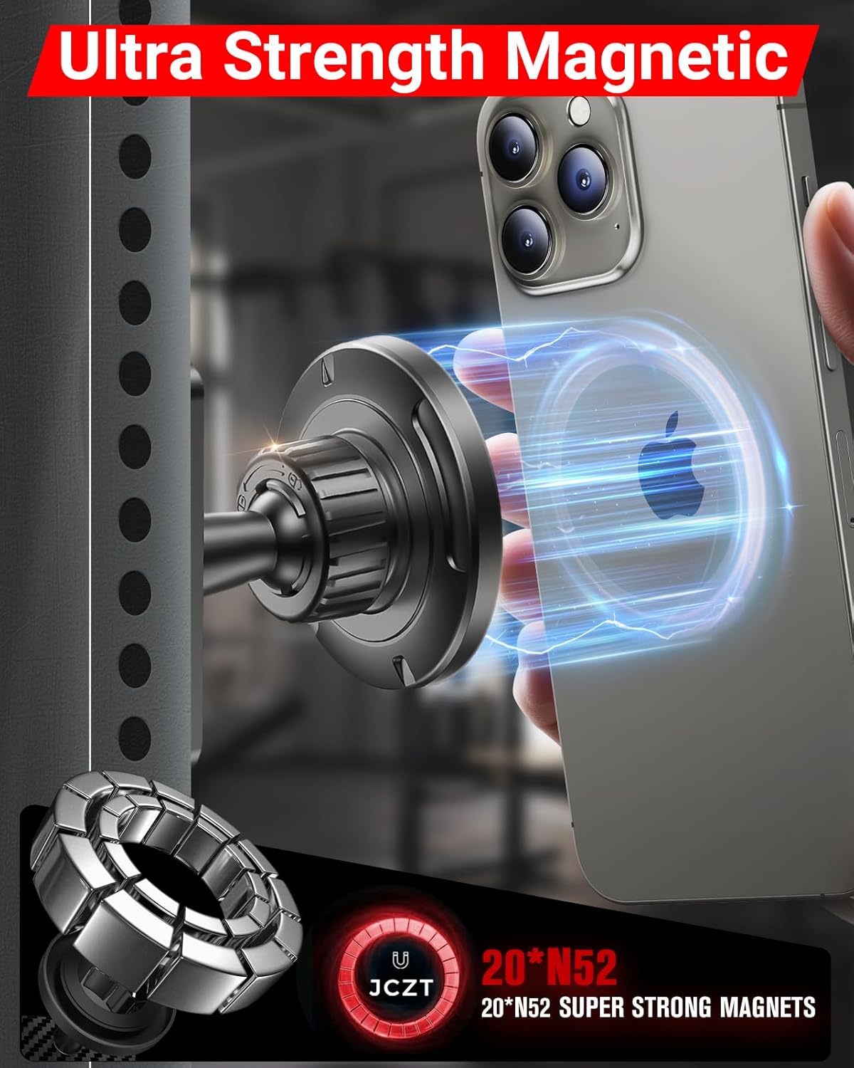 Highly effective Magnetic Base: Constructed-in 8*N52 industrial-grade magnets embedded within the base of the fitness center magnetic telephone holder guarantee a powerful and shockproof match on any metallic floor, making this health telephone holder securely mounted on fitness center gear – even throughout weightlifting or high-intensity interval coaching with zero wobble!
