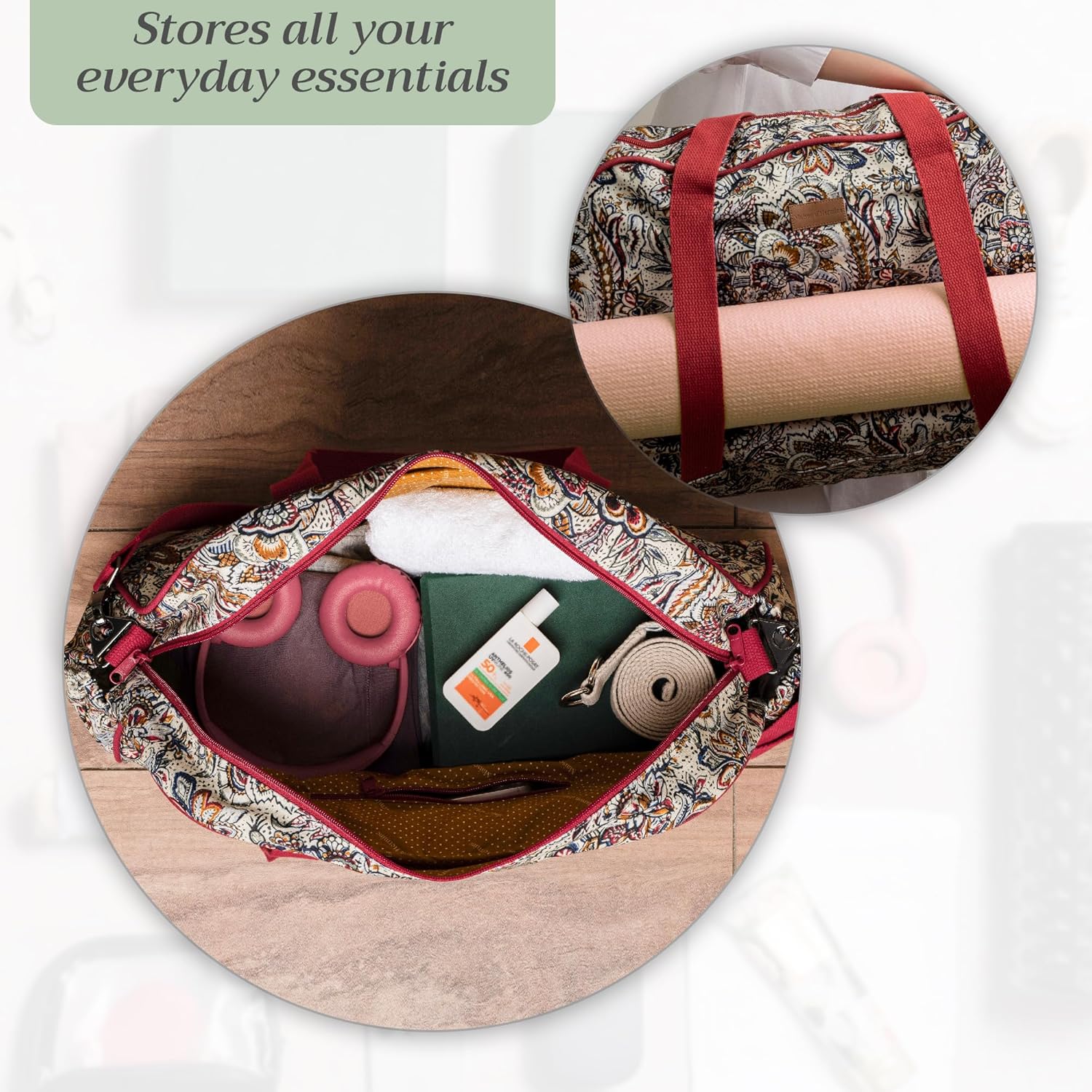 Premium 100% Cotton: Crafted from 3/10s cotton canvas, this yoga duffel bag affords sturdiness, breathability. Light-weight but sturdy, it withstands day by day exercises and weekend getaways with ease