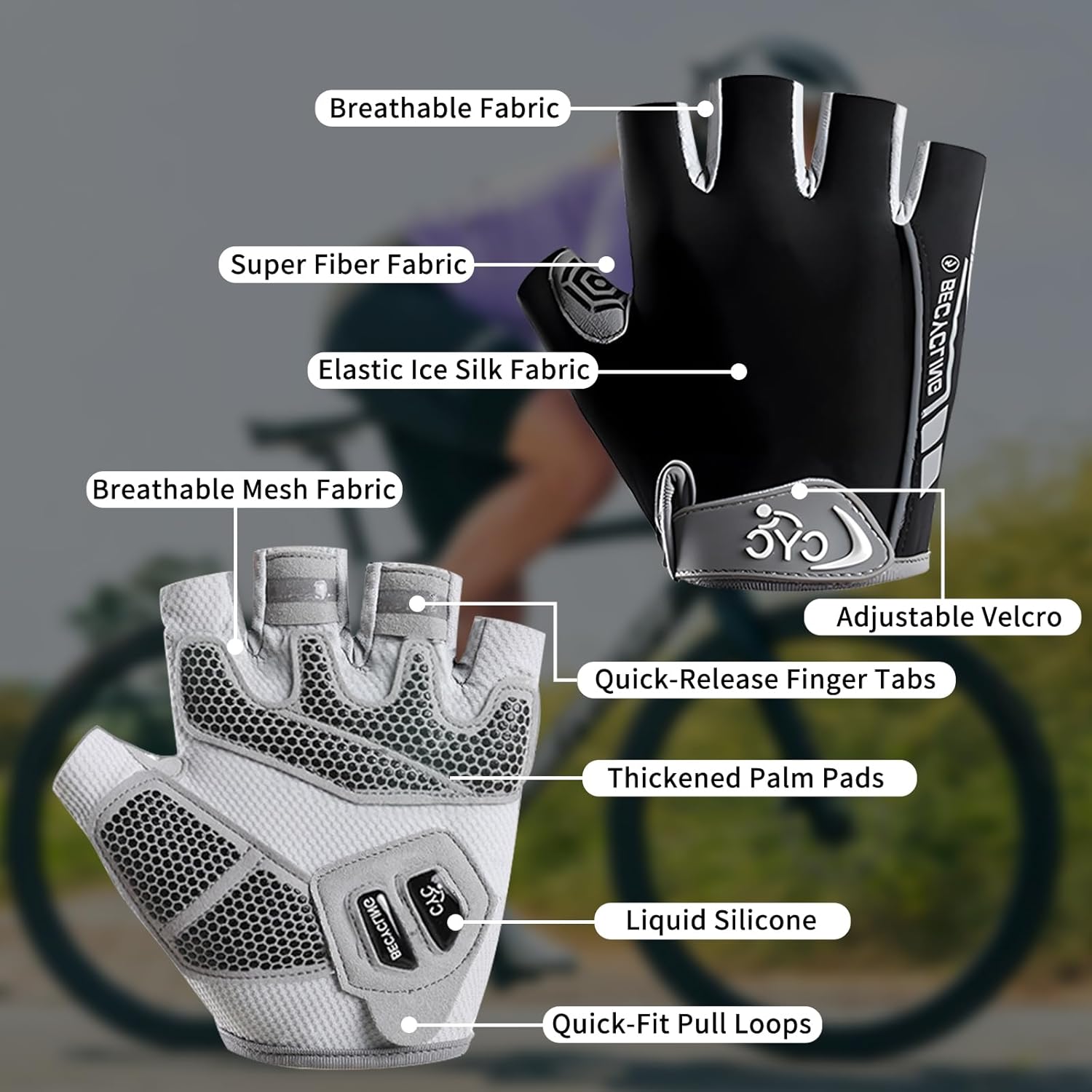 That includes breathable mesh panels between fingers and elasticated ice-silk material, our bicycle gloves wick away sweat and hold fingers cool—good for summer time rides, spin courses, or path adventures.