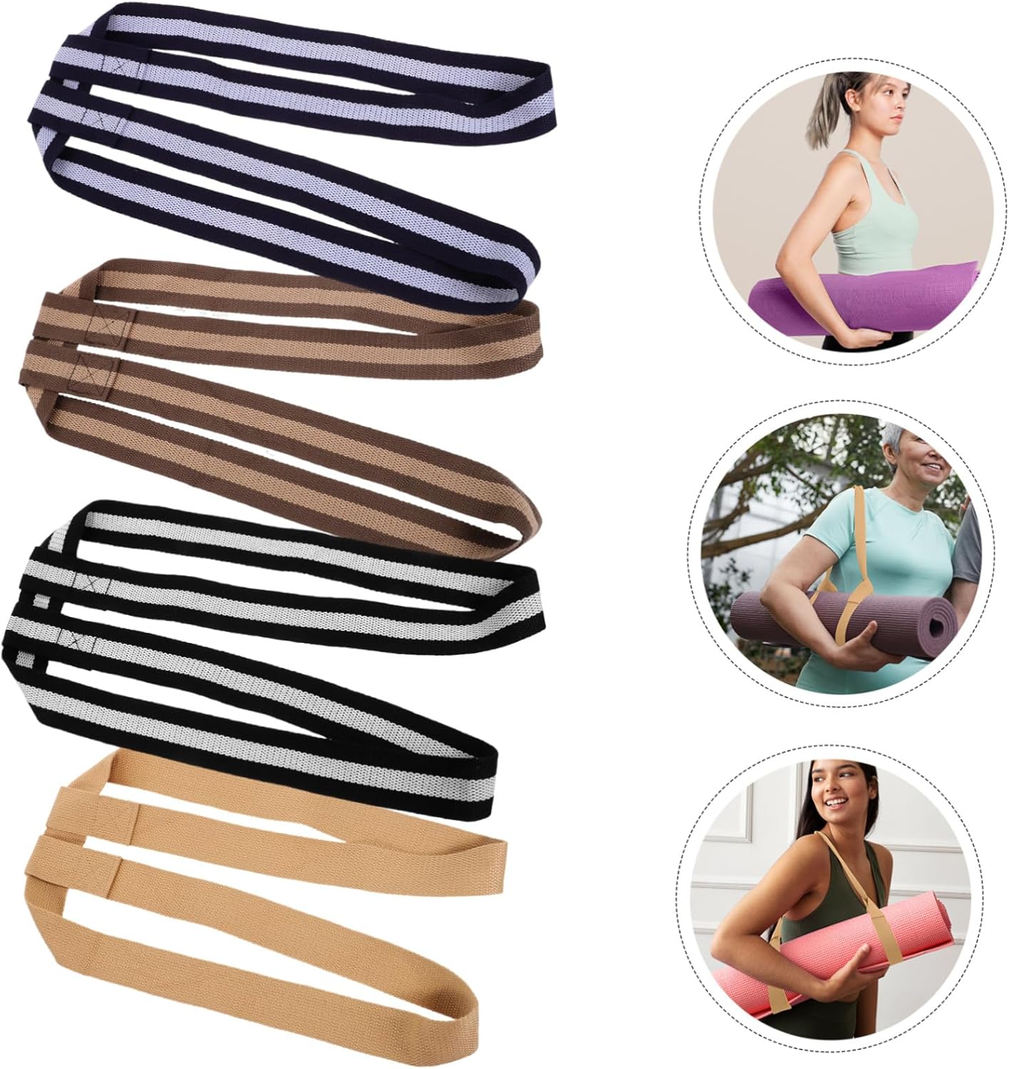 Mikinona 4pcs Adjustable Yoga Mat Strap Polyester Cotton Exercise Mat Holder Portable Sling for Fitness Stretching and Yoga Training Lightweight Carrier Bands in Khaki Black-white