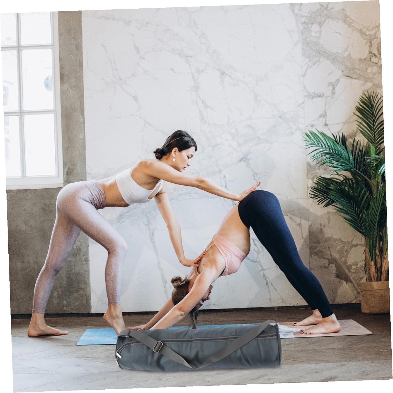 – Adjustable shoulder strap for bag size. Full zip closure for straightforward insertion of the mat moveable coaching yoga bag.