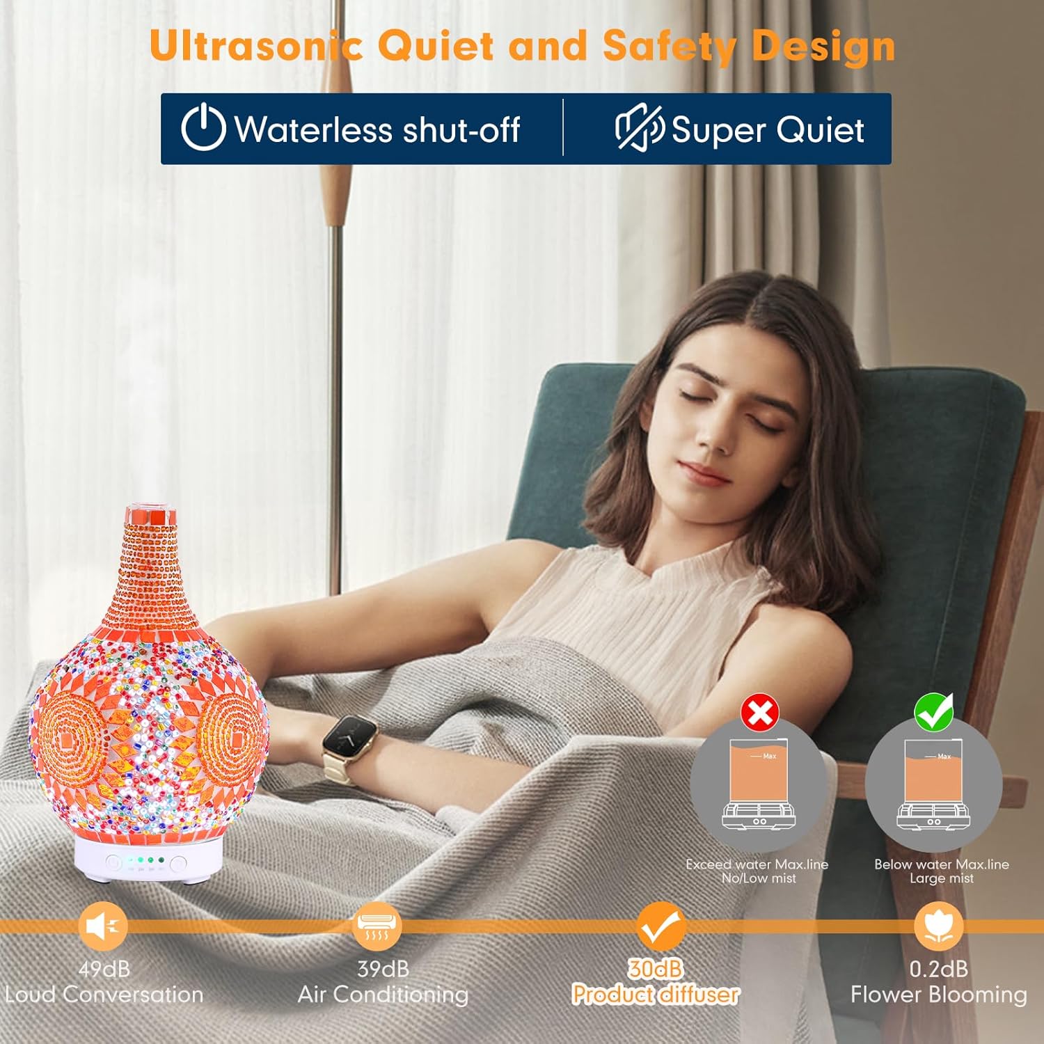 Secure and Dependable Design: Made with BPA-free supplies and premium glass, this diffuser is secure for your loved ones. The waterless auto shut-off operate ensures worry-free use by powering down when the water degree is low.