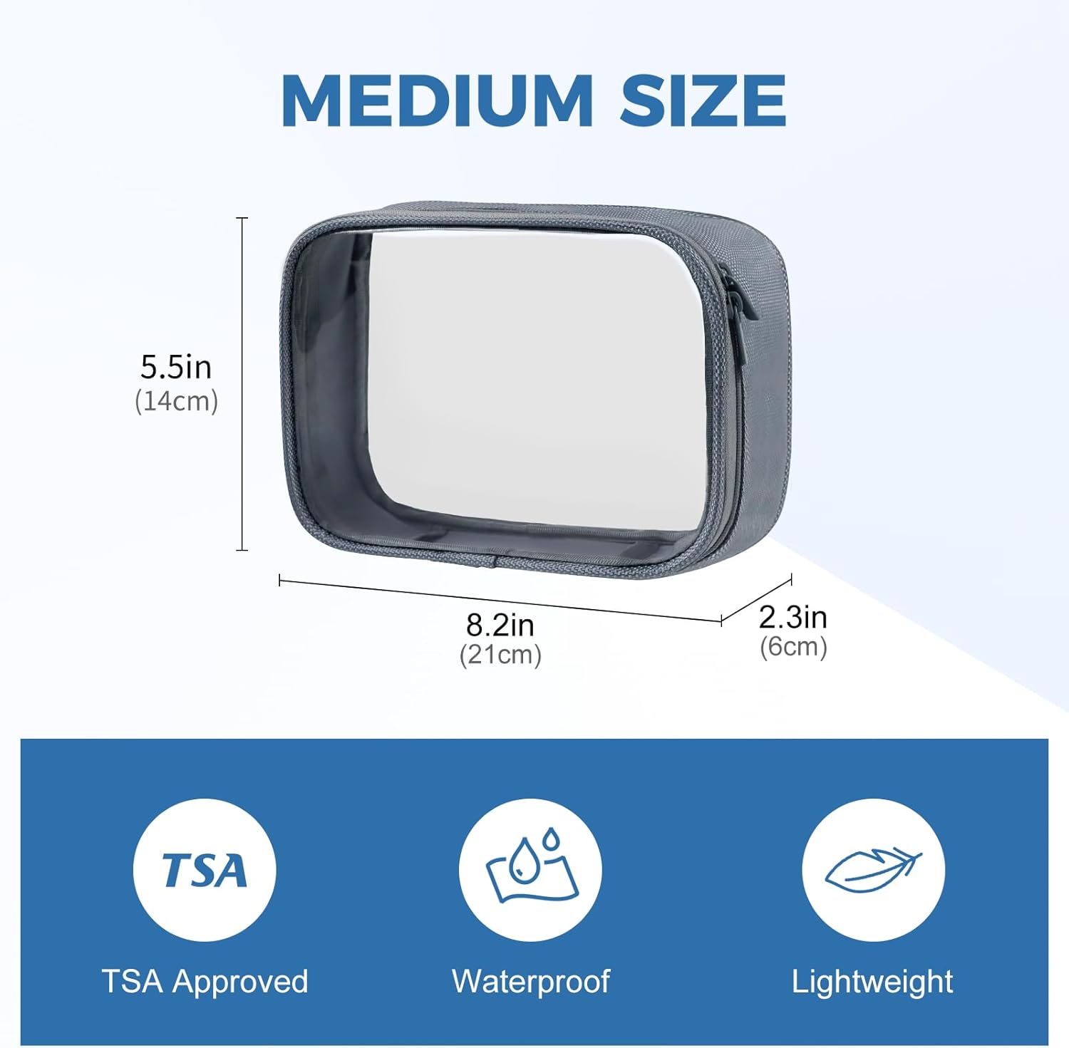 【TSA APPROVED】 The Moyad toiletry bag is TSA accepted, fabricated from clear PVC materials, and complies with the TSA 3-1-1 liquids rule. Every bag measures 8.2 x 5.5 x 2.3 inches and is spacious sufficient to carry a number of 3oz liquid bottles. It helps you simply find objects and go safety checks shortly
