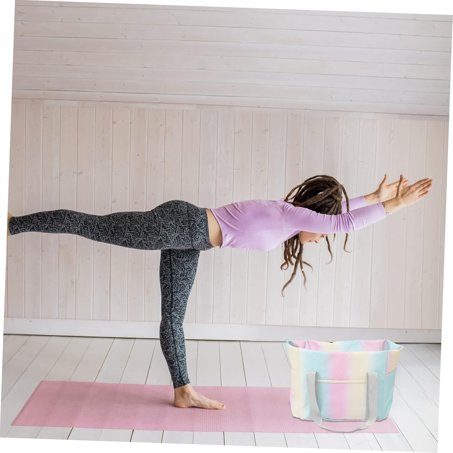 -Materials: Polyester yoga tote bag.