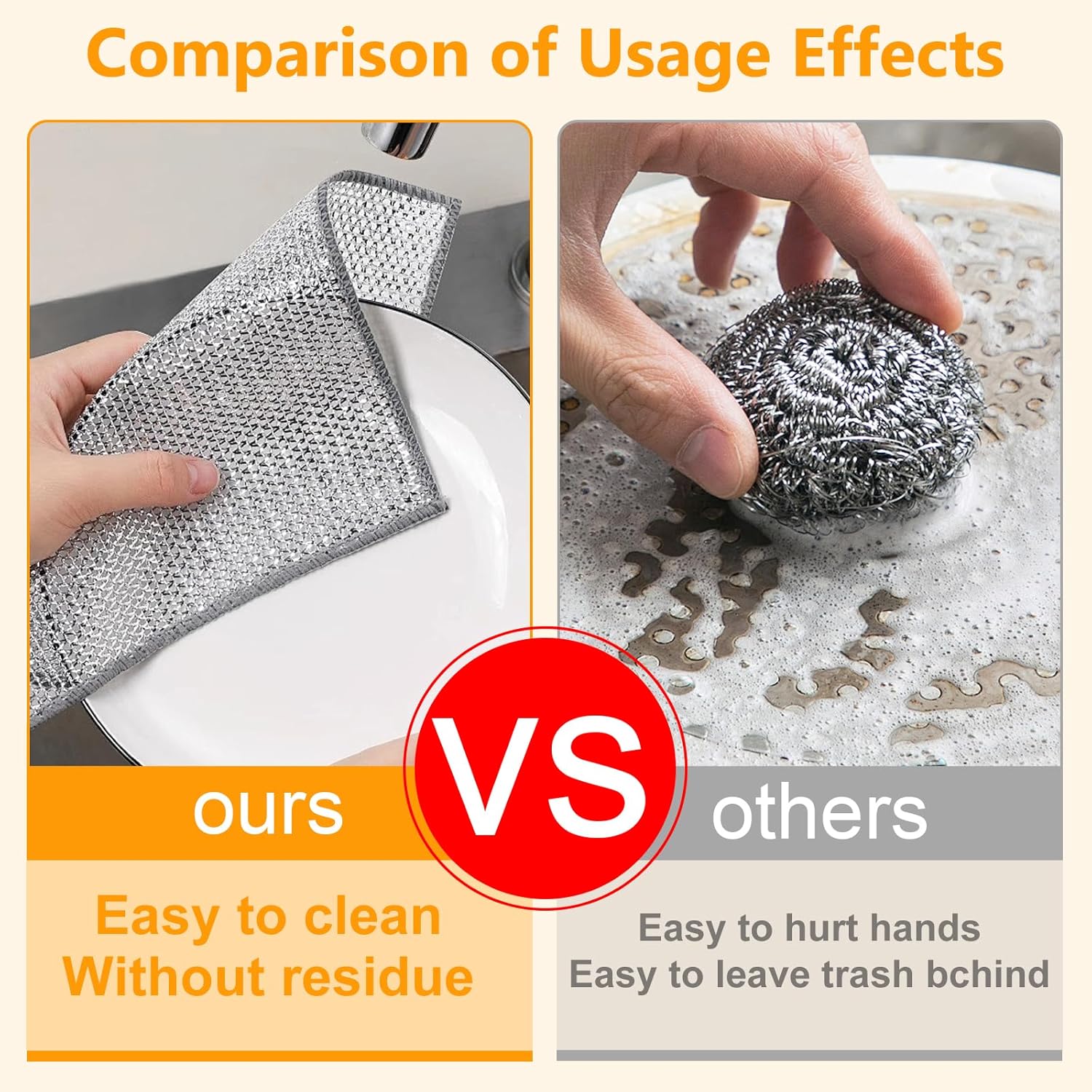 Mild & Non-Scratch Cleansing: Made with silver fiber threads, combining the softness of dish cloths and the scrubbing energy of metal wool scrubbers, offering efficient cleansing with out scratching surfaces.