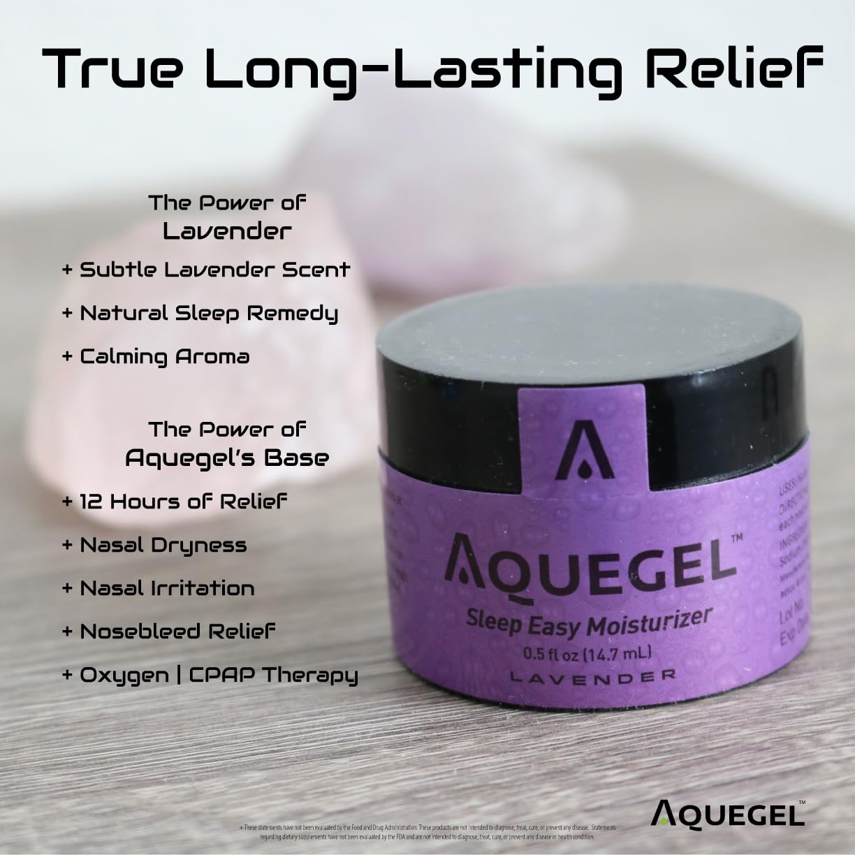 Aquegel’s distinctive nasal system offers 12-Hours of lavender important oil to assist: