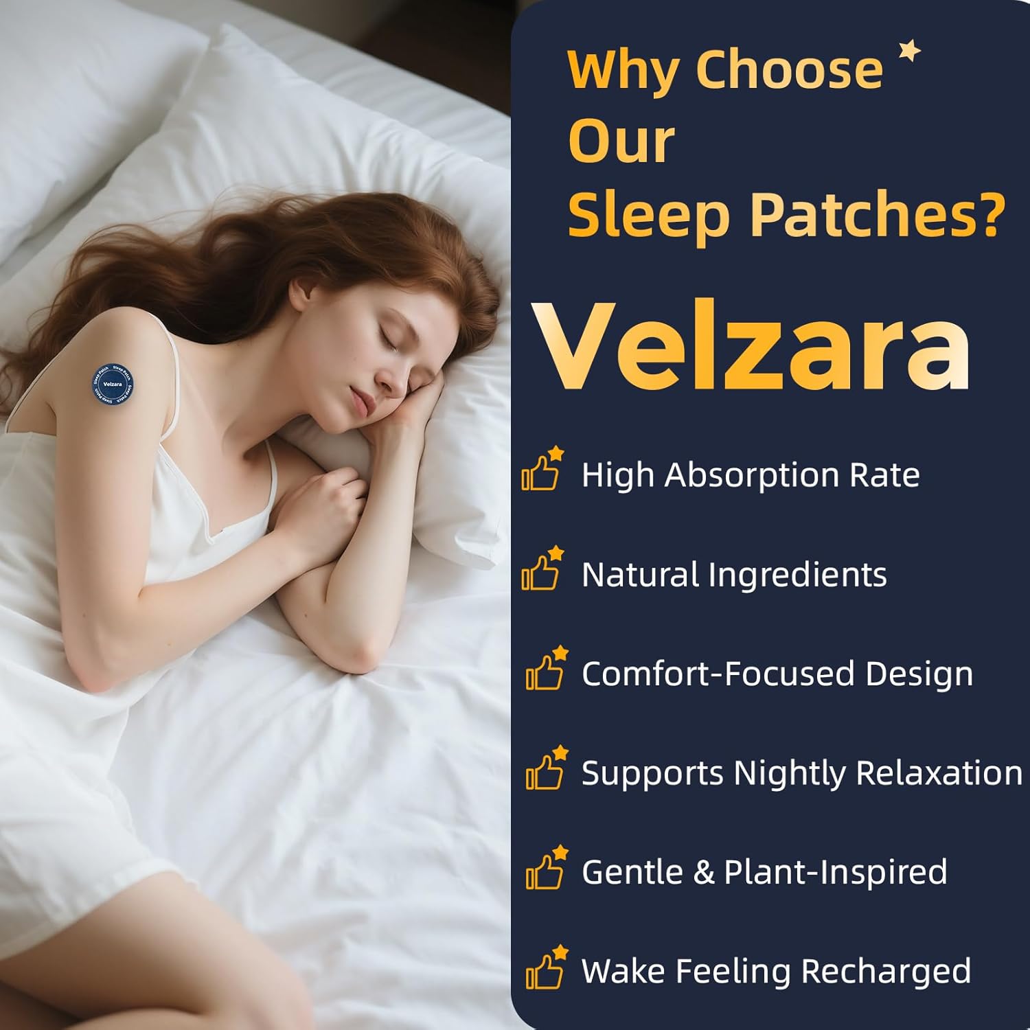 Easy Sleep Assist, No Further Steps: Say goodbye to difficult routines. Velzara affords a easy, non-disruptive addition to your night — no tablets, no teas, no electronics. Only one patch, and also you’re able to chill out and unwind.