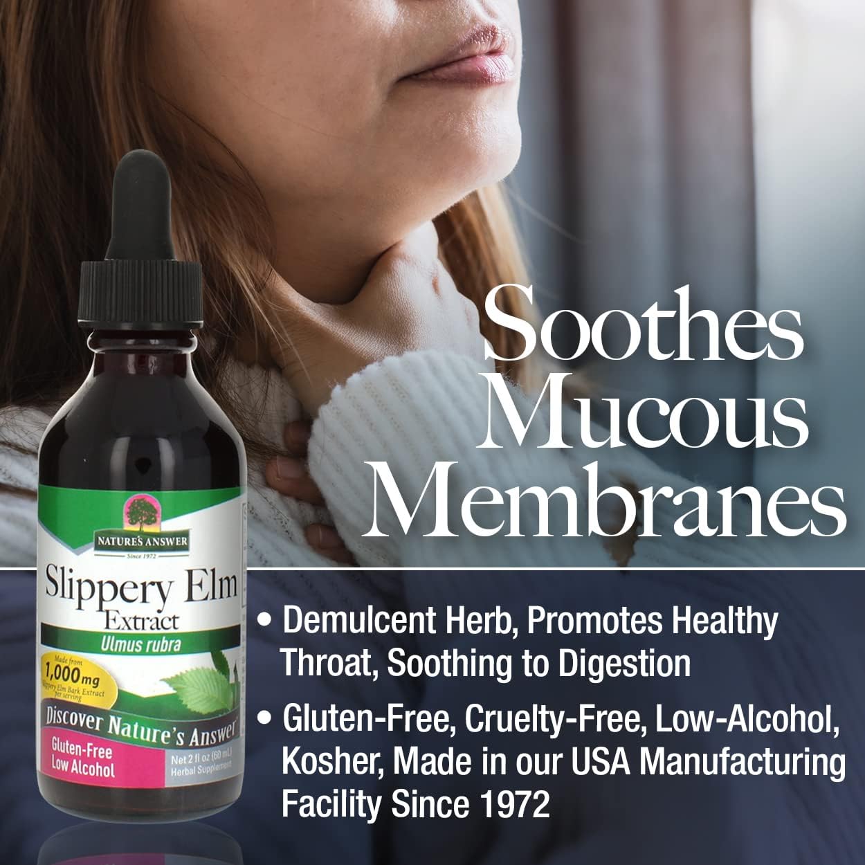 Helps Mucous Membranes: Our Slippery Elm 2 Ounce Extract, made with low natural alcohol, provides pure help for mucous membranes. This extract combines the advantages of slippery elm bark, slippery elm powder to advertise general wellness.