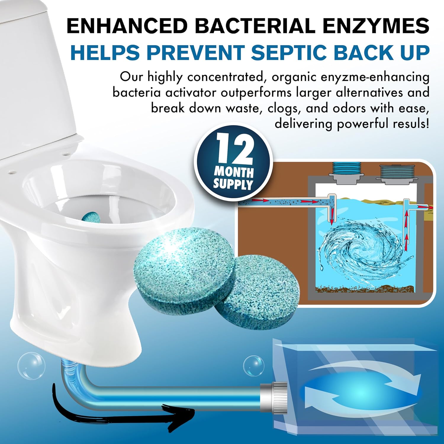 1-12 months Provide: Contains 12 ultra-compact, high-potency tablets for month-to-month septic system upkeep.