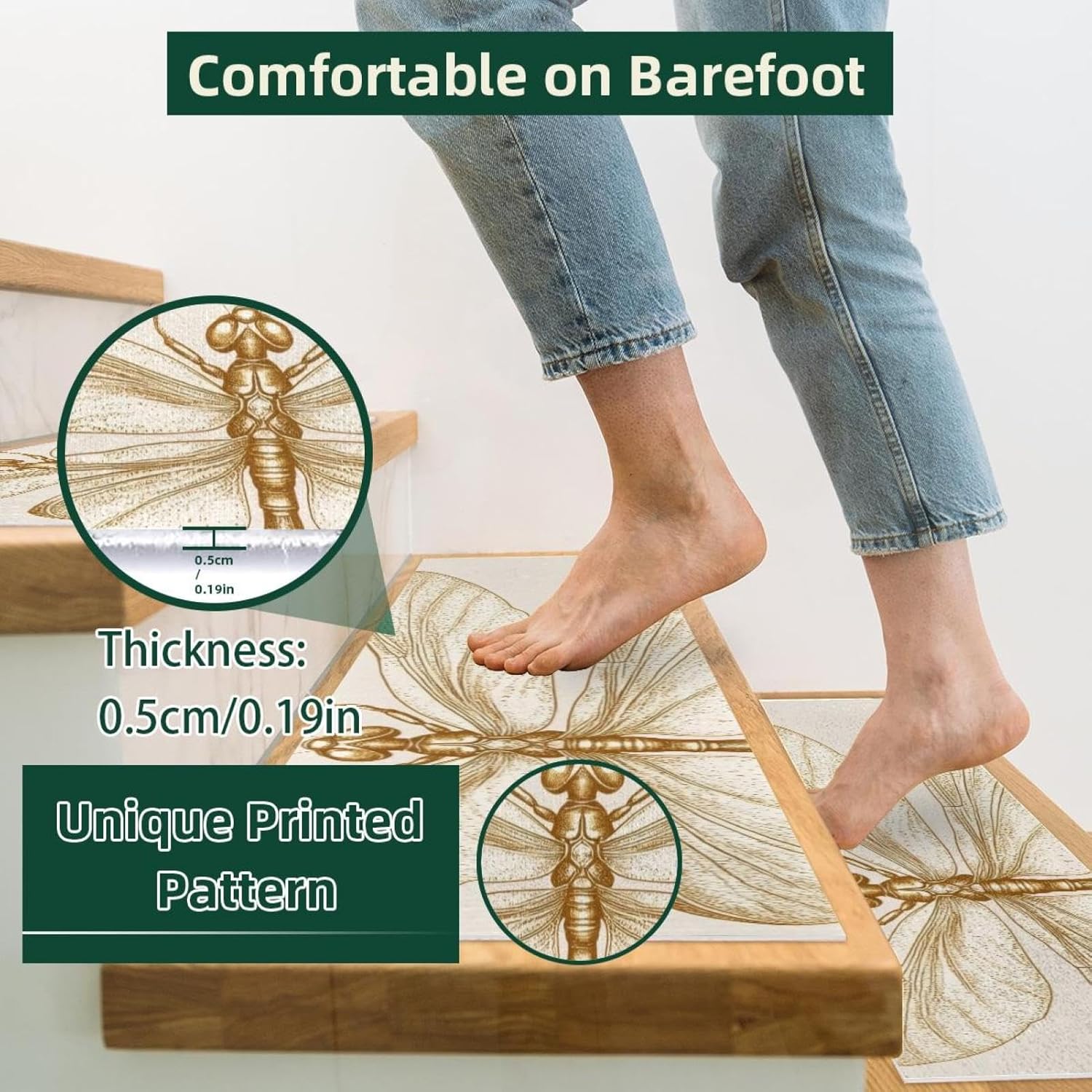 Security Helper – Our stair carpet treads are your nice associate in stopping slipping. The anti slip backside supplies a robust grip, permitting you to go up and down the steps with ease. Your loved ones and pets not have to fret about slipping. The ornamental sample on the stair mat additionally provides a contact of vitality to your own home.