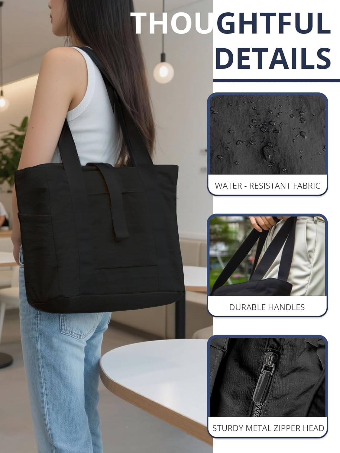 This 16″x13″x6″ ultra-light weight (0.7lbs) ladies’s tote is your final all-in-one companion. Crafted with Taslon outer and polyester lining, it’s 30% lighter than canvas but twice as tear-resistant, with a water-repellent lining to guard electronics.