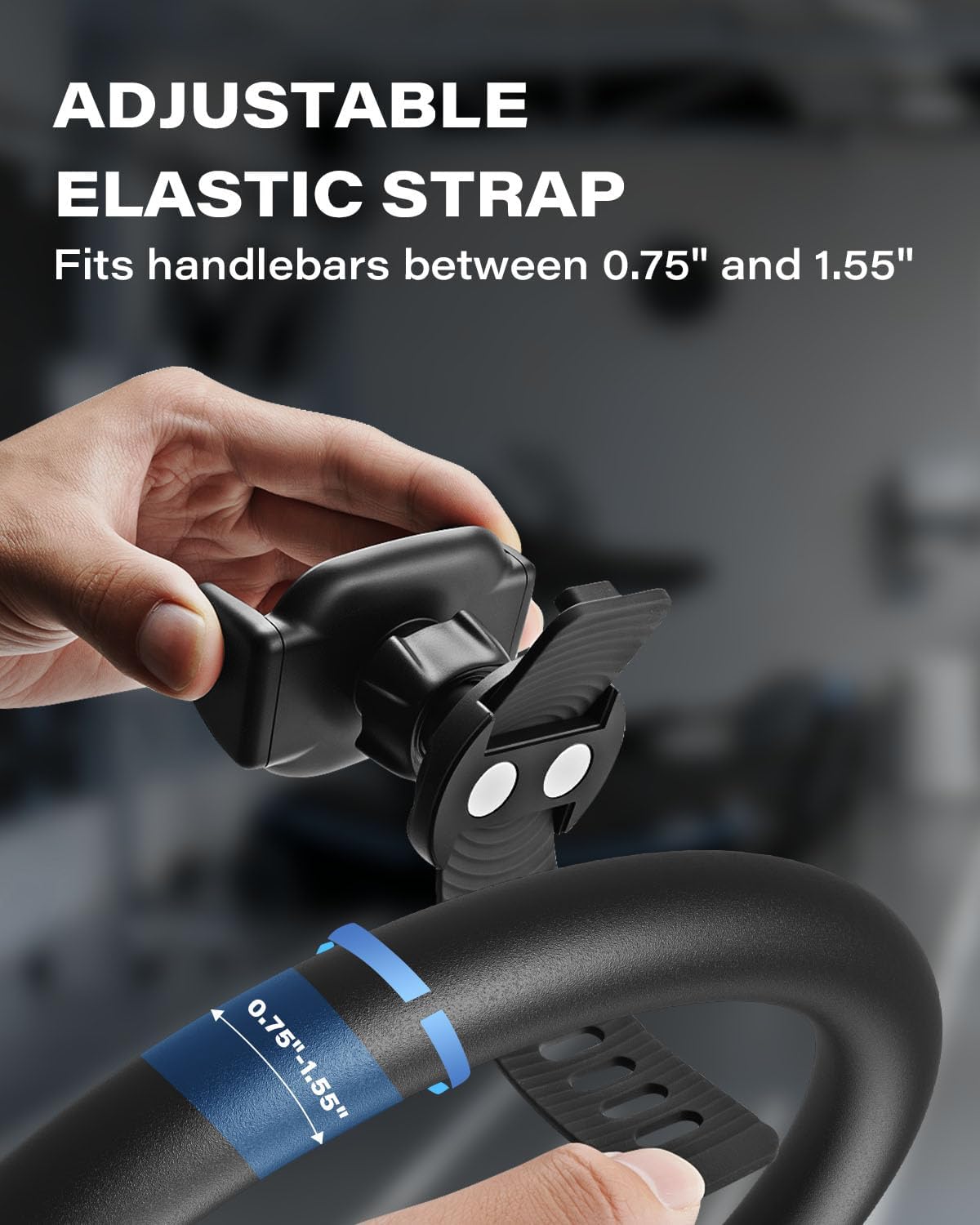 Safe & Versatile Silicone Mounting Strap – Includes a stretchable, anti-slip silicone strap that ensures a agency grip on handlebars (0.75–1.55″ in diameter). Excellent for Peloton bikes, treadmills, strollers, purchasing carts, golf carts, and different fitness center tools. Tighten the strap for optimum stability throughout use