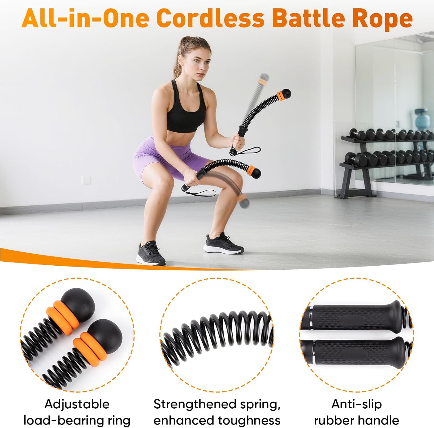 【Excessive-Effectivity Full-Physique Calorie Burn – As much as 400 Energy in 20 Minutes】 Say goodbye to inefficient exercises! These ropeless battle ropes are engineered for Excessive-Depth Interval Coaching (HIIT), quickly elevating your coronary heart price to kickstart fats burning. In simply 20 minutes, you possibly can burn as much as 400 energy—equal to 40 minutes of working. Via explosive swinging motions, they concurrently interact and strengthen your again, arms, core, chest, shoulders, and legs, delivering a very environment friendly full-body exercise.