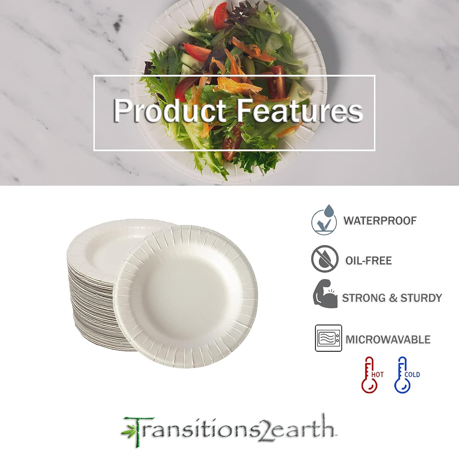 👍 MICROWAVEABLE, HEAT RESISTANT, STRONG and STURDY: Transitions2earth Compostable PFAS-Free Plates can be utilized within the microwave with no downside. They’re warmth resistant to allow them to be used with scorching meals. They’re robust and durable. Good for various events corresponding to weddings, events, lunches, picnics, tenting and lots of extra. Helpful and moveable paper merchandise which you could carry anytime. Journey and eat wherever with out worrying about harming the setting or spoiling your meals.