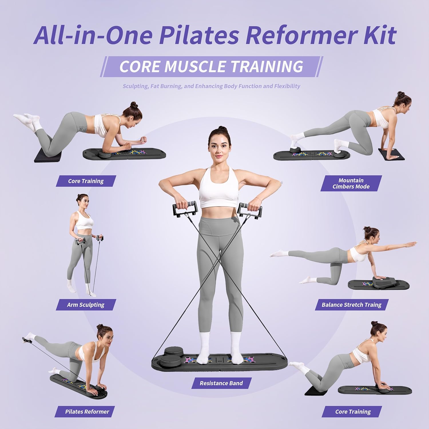 【15-in-1 Full Physique Pilates Reformer Board】 Remodel your at dwelling pilates routine with our all-in-one Pilates reformer board, that includes 15 versatile capabilities together with core coach, resistance bands, push-up bars, stability board, ab curler, and plank assist. Designed to sculpt abs, construct muscle, burn fats, and enhance flexibility, this dwelling pilates gear delivers skilled outcomes for learners to superior customers.