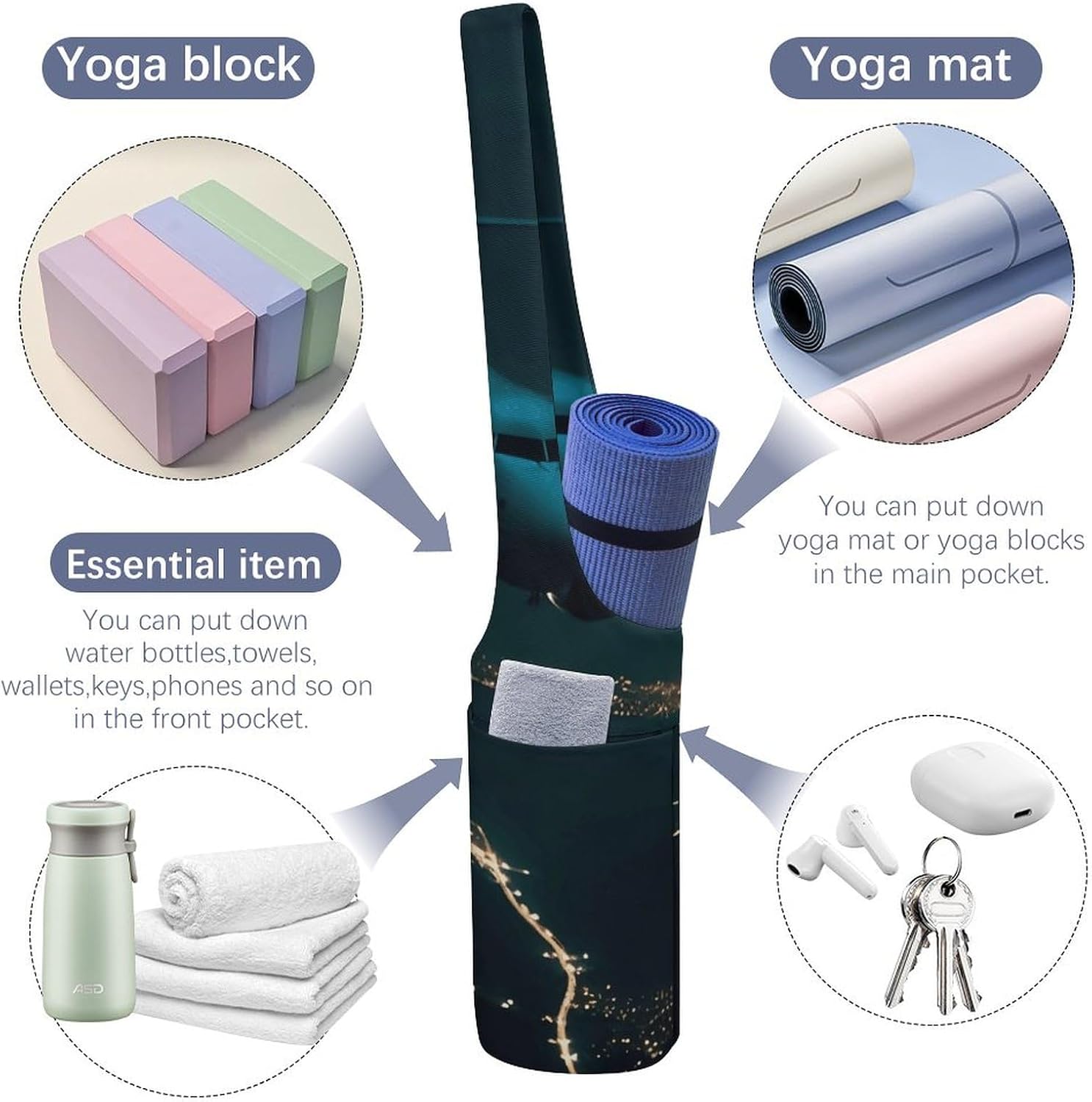 Straightforward Match: Nice for train yoga mat and suits most measurement mats, additionally for fitness center sports activities baggage, procuring totes, journey baggage and yoga present baggage