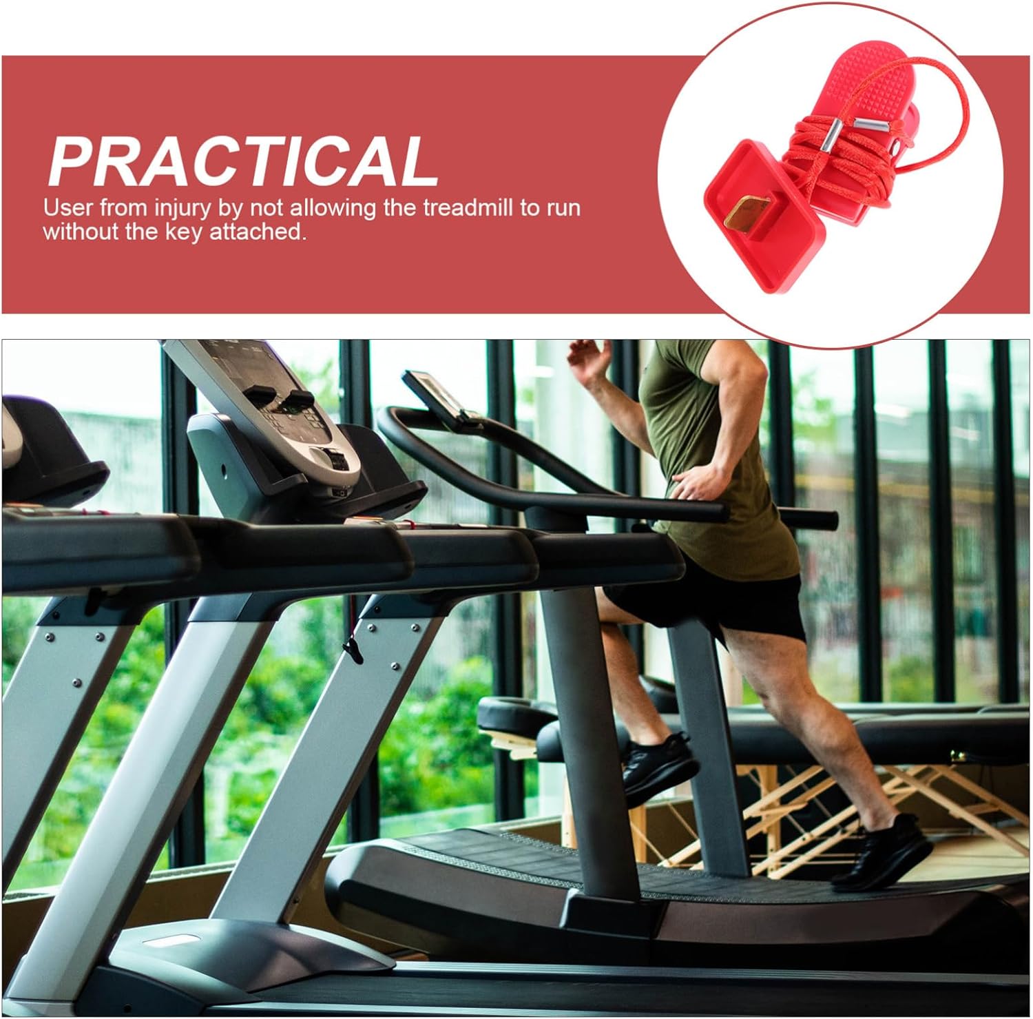 -Coloration:Crimson substitute key for treadmill