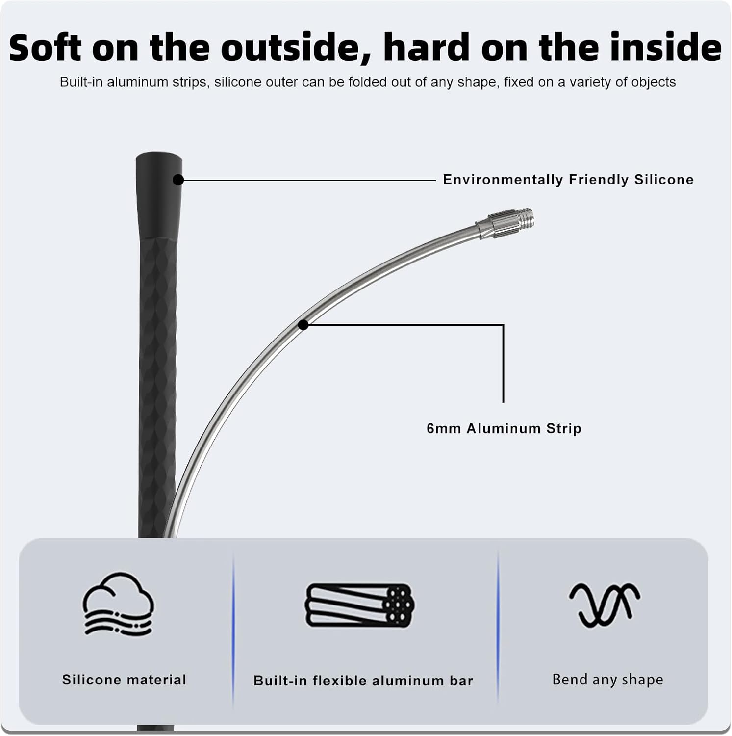 **Versatile and Sturdy Design**: The Moveable Versatile Telephone Holder encompasses a gooseneck design created from high-quality aluminum alloy and silicone, guaranteeing long-lasting sturdiness and security to your well being. It may be twisted and bent into varied angles effortlessly, making it adaptable to be used on completely different surfaces.