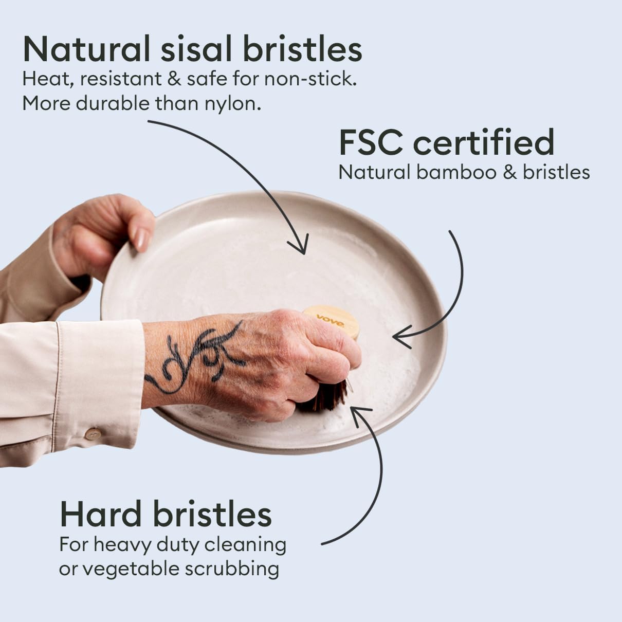 THE VOVE DIFFERENCE: Take pleasure in a plastic-free cleansing expertise with our Bamboo scrub brush set, full with biodegradable and compostable bristles and FSC licensed recycled kraft field packaging, supporting sustainable dwelling with out compromising on efficiency or fashion.