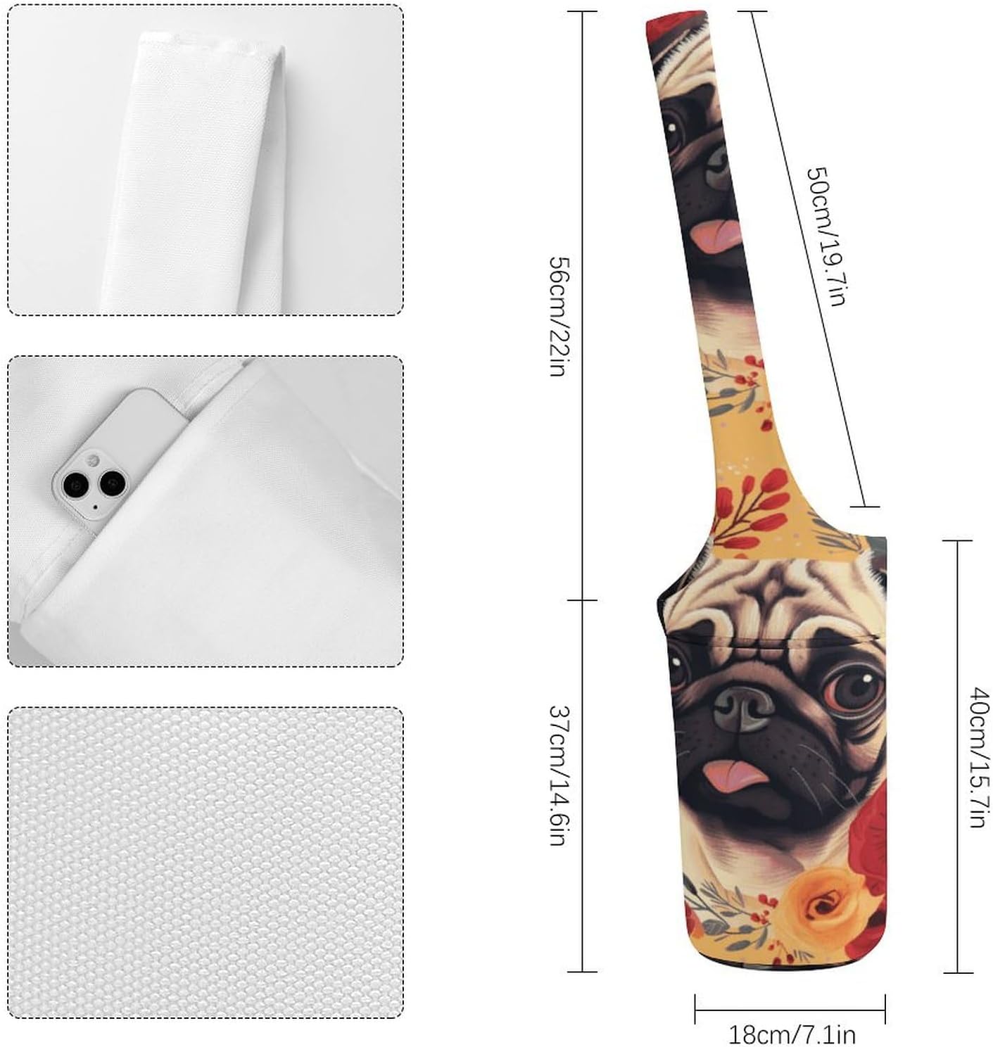 The Yoga Mat Bag with Excessive High quality Floral Printed Cotton Canvas Yoga Tote Bag with Massive Pocket Matches Most Dimension Mats.
