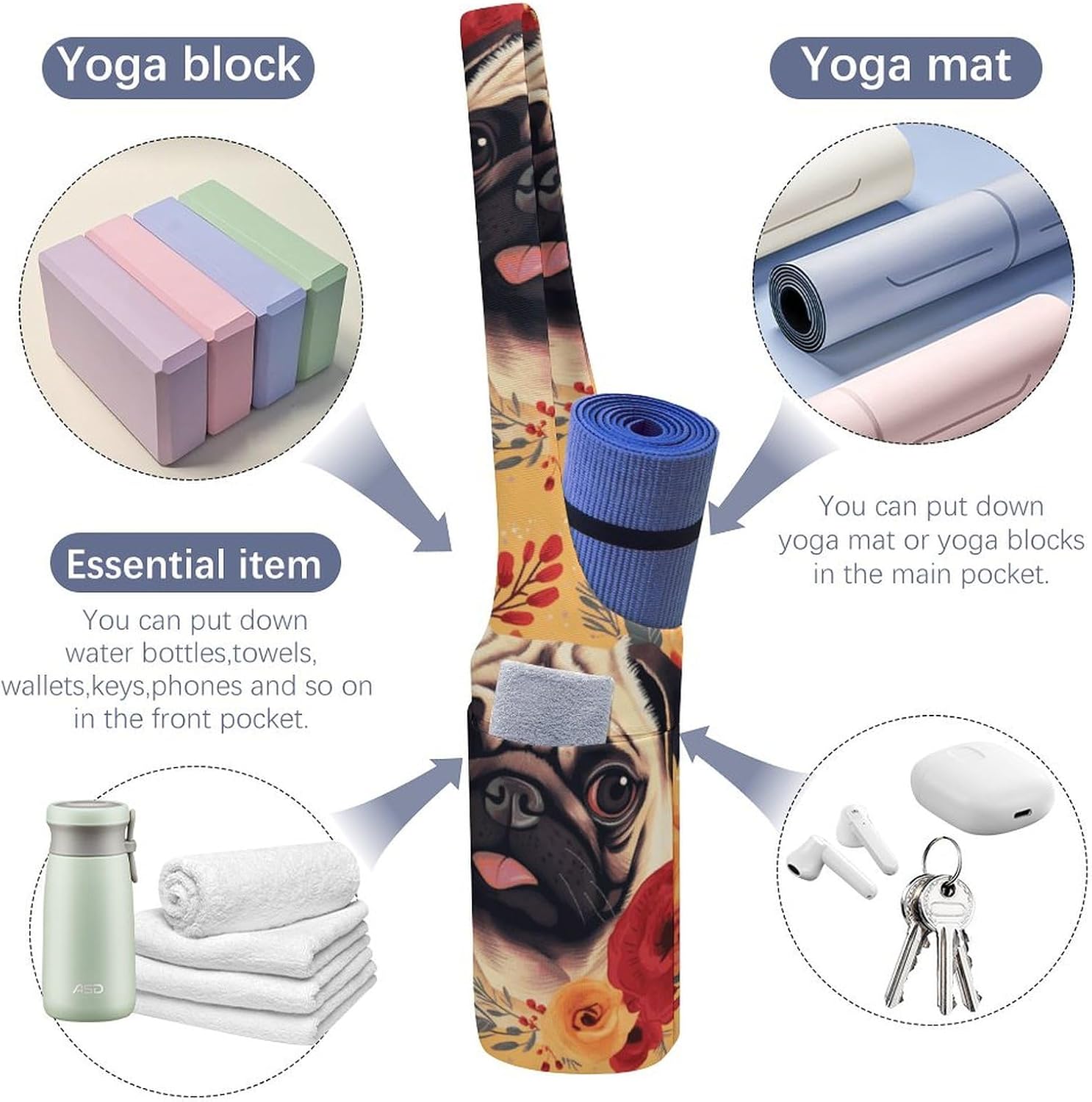 Straightforward Match: Nice for train yoga mat and matches most measurement mats, additionally for health club sports activities baggage, procuring totes, journey baggage and yoga present baggage