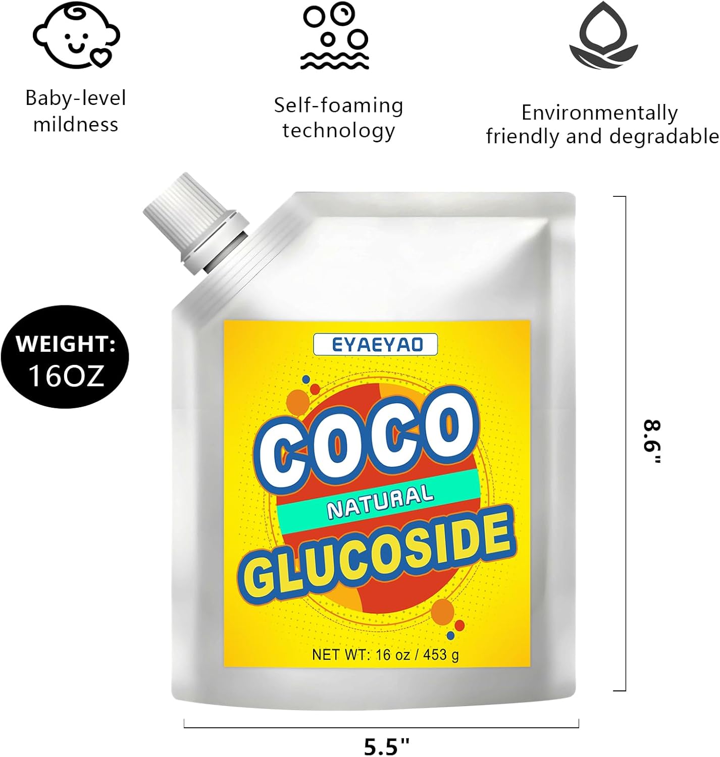 Pure Coco Glucoside – 8 Ounces, 100% Natural, Gentle Surfactant for DIY Skincare, Haircare & Cleaning Products, Eco-Friendly & Biodegradable (16 Ounces)