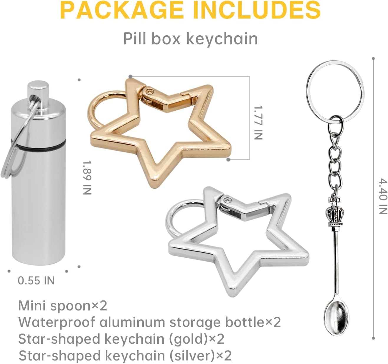 Grasp the star keychain in your denims, purse, or backpack. While you want it, simply twist off the cap of the aluminum bottle and use the mini spoon to simply scoop out the contents.