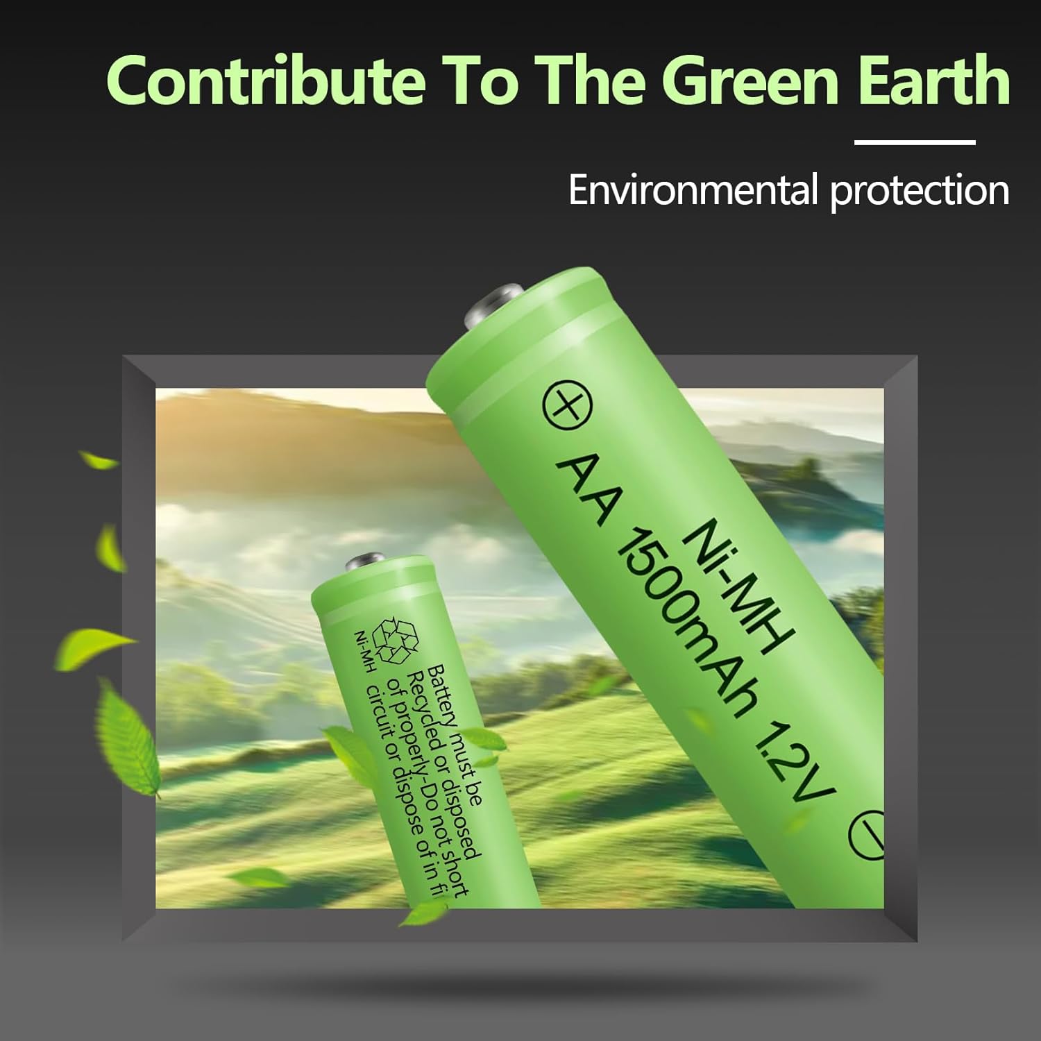 NiMH rechargeable AA battery, it’s constructed with 1500mAh capability has extra rechargeable occasions than NiCD batteries, spend much less cash on one-time use disposable alkaline batteries, cut back hurt to the setting