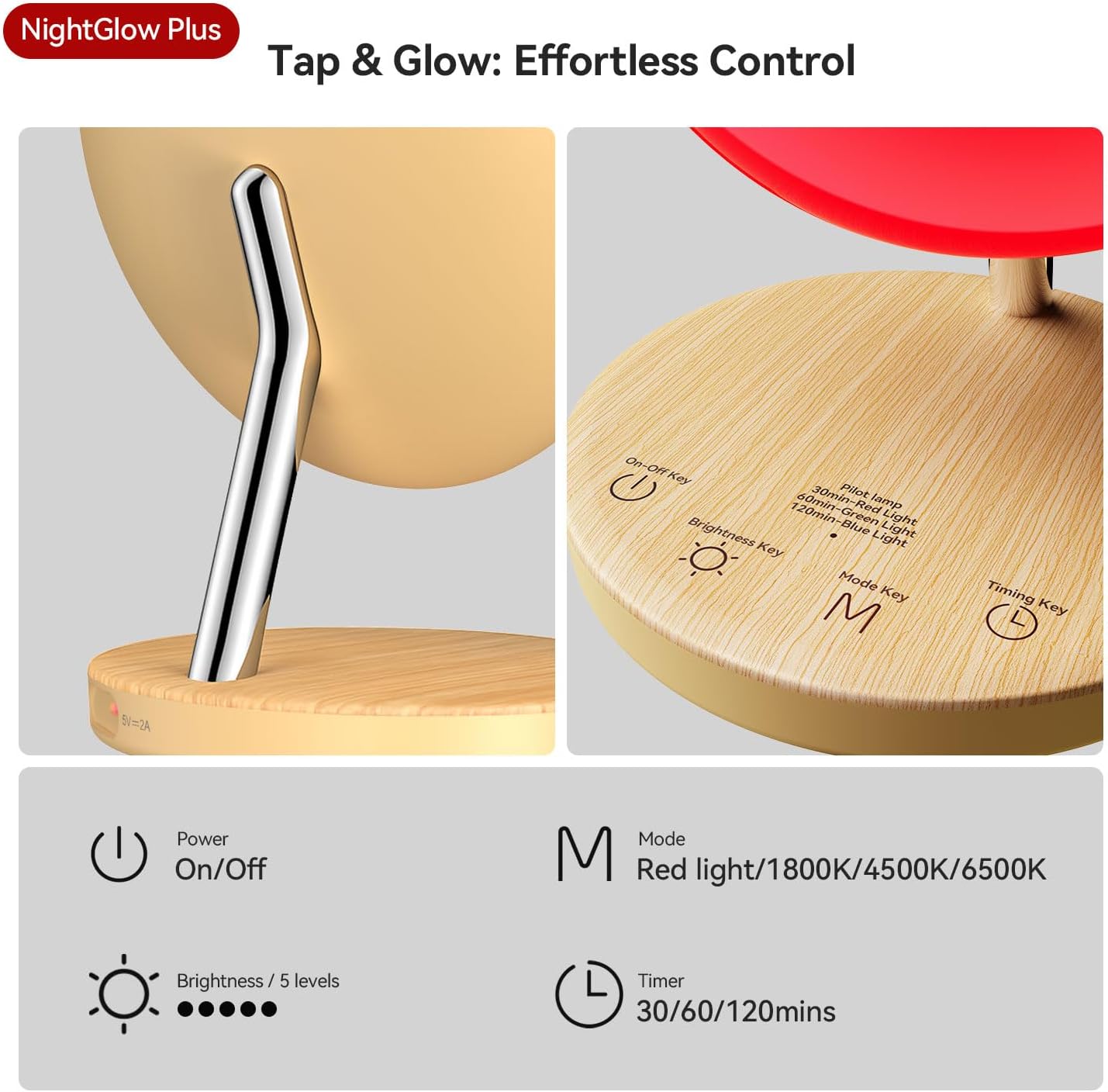 Wooden – Grain & Electroplated Craftsmanship, A Premium Reward: In contrast to plastic rivals, our purple mild lamp includes a water – switch wooden – grain base and electroplated steel arm — bigger dimension, luxe texture, and decor – worthy design. Good as a present for fogeys, new mothers, or sleep seekers who need perform and elegance wrapped in a single.