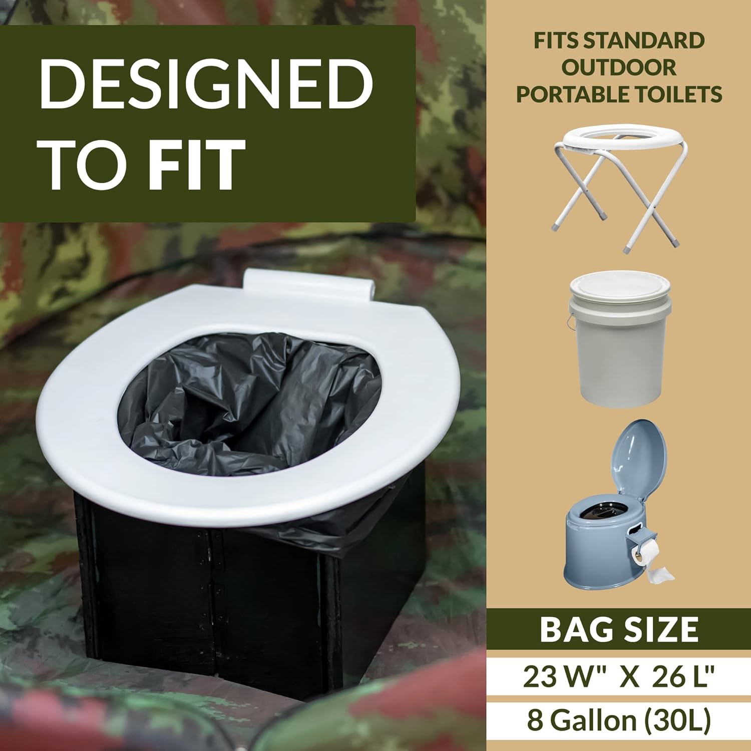 Safe Match: Sized at 23″W x 26″L (8 Gal Capability), making them suitable with normal moveable bathrooms, and 5-8 gallon buckets