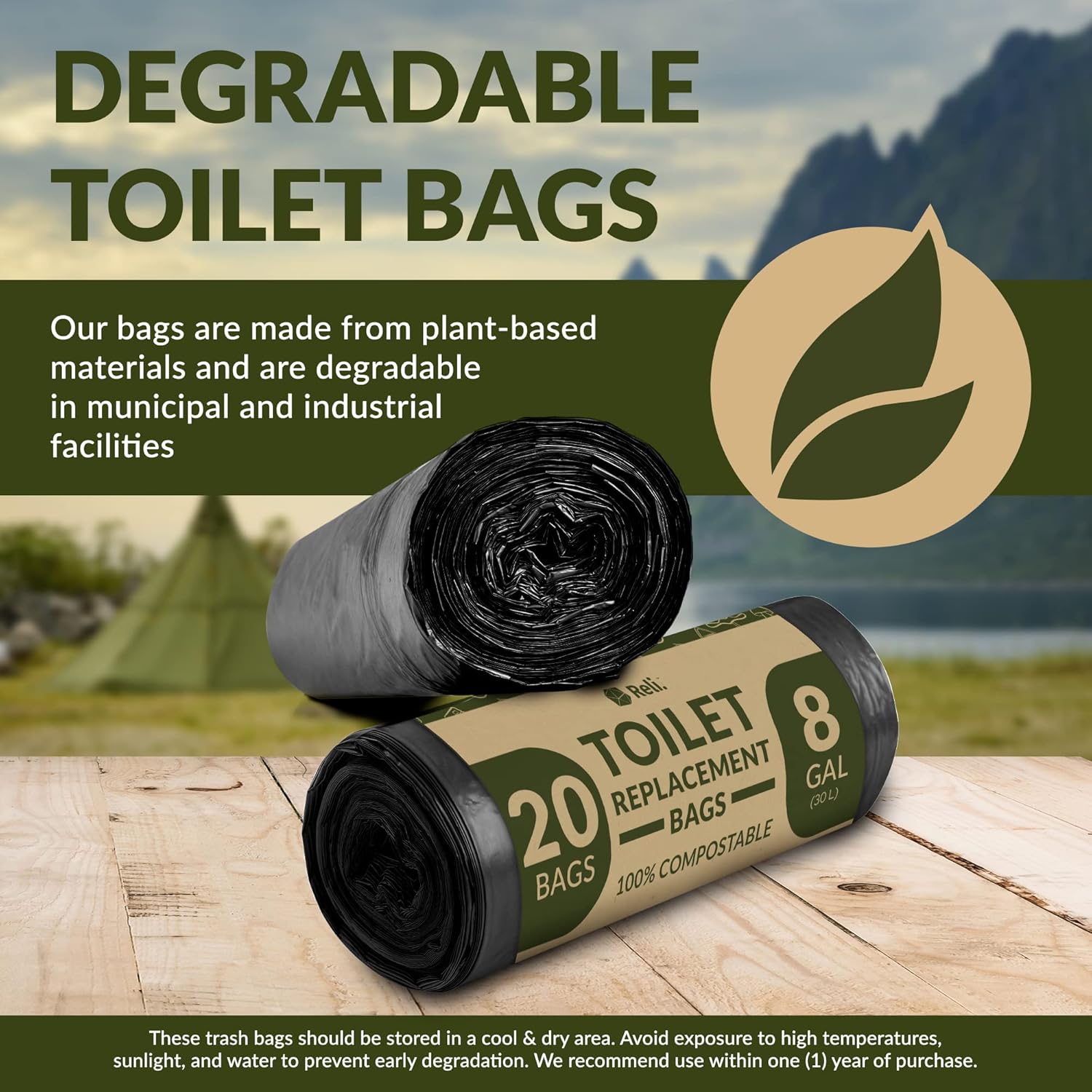 Be the first to review “Reli. (20 Count) Portable Toilet Bags Compostable (8 Gallon – 1 Mil Thick) | Camping Toilet Bags | ASTM D6400 | Use for Portable Commode, Camp, Travel, Hiking (Black)”